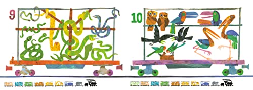 This board book combines simple counting with Carle’s unusual illustrations of animals. Early learners will find the whimsical pictures appealing as they learn the beginning rudiments of numbers and counting. – Midwest Book Review