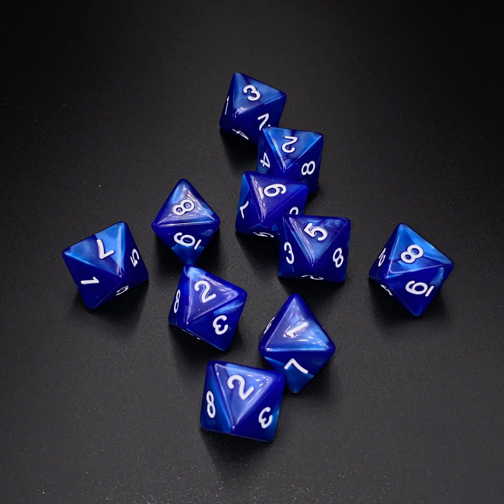 Package & Size: Get 10 D8 dice, plenty for your fun games. Each one is 1.6cm on each side, small and light, fitting nicely in your hand, and easy to store.