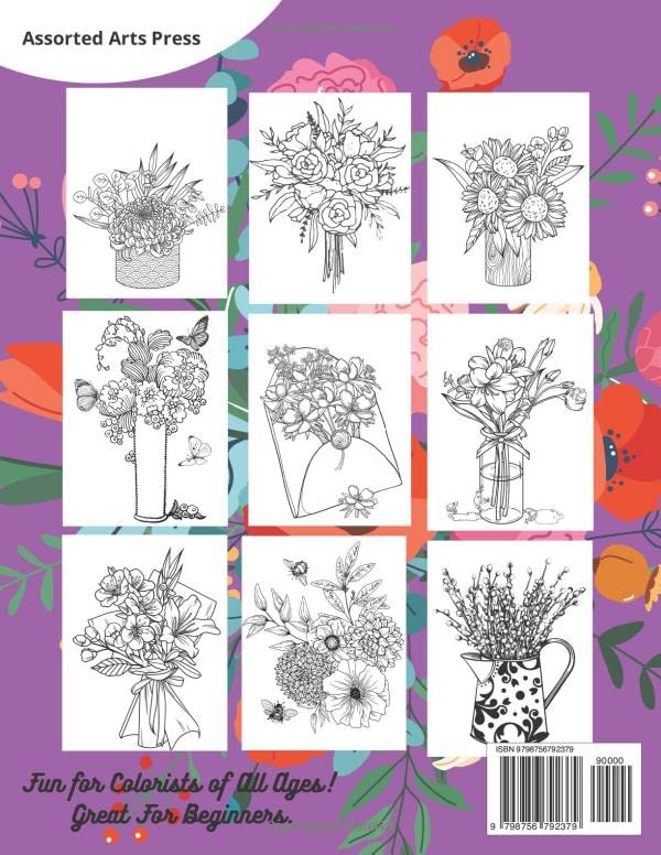 Who doesn’t love flowers, even better than flowers, bouquets of flowers! Relax and enjoy creating the fantastic bouquets of your dreams. The beautiful whimsical designs and bounty of flowers will bring joy into the hearts of all who color them. Husbands and boyfriends, give 100 Bouquets and your partner will adore you. 100 Single Sided Flower Bouquet Prints 8.5 x 11 Glossy Cover 200 Pages No Repeat Prints Created With Love And Joy