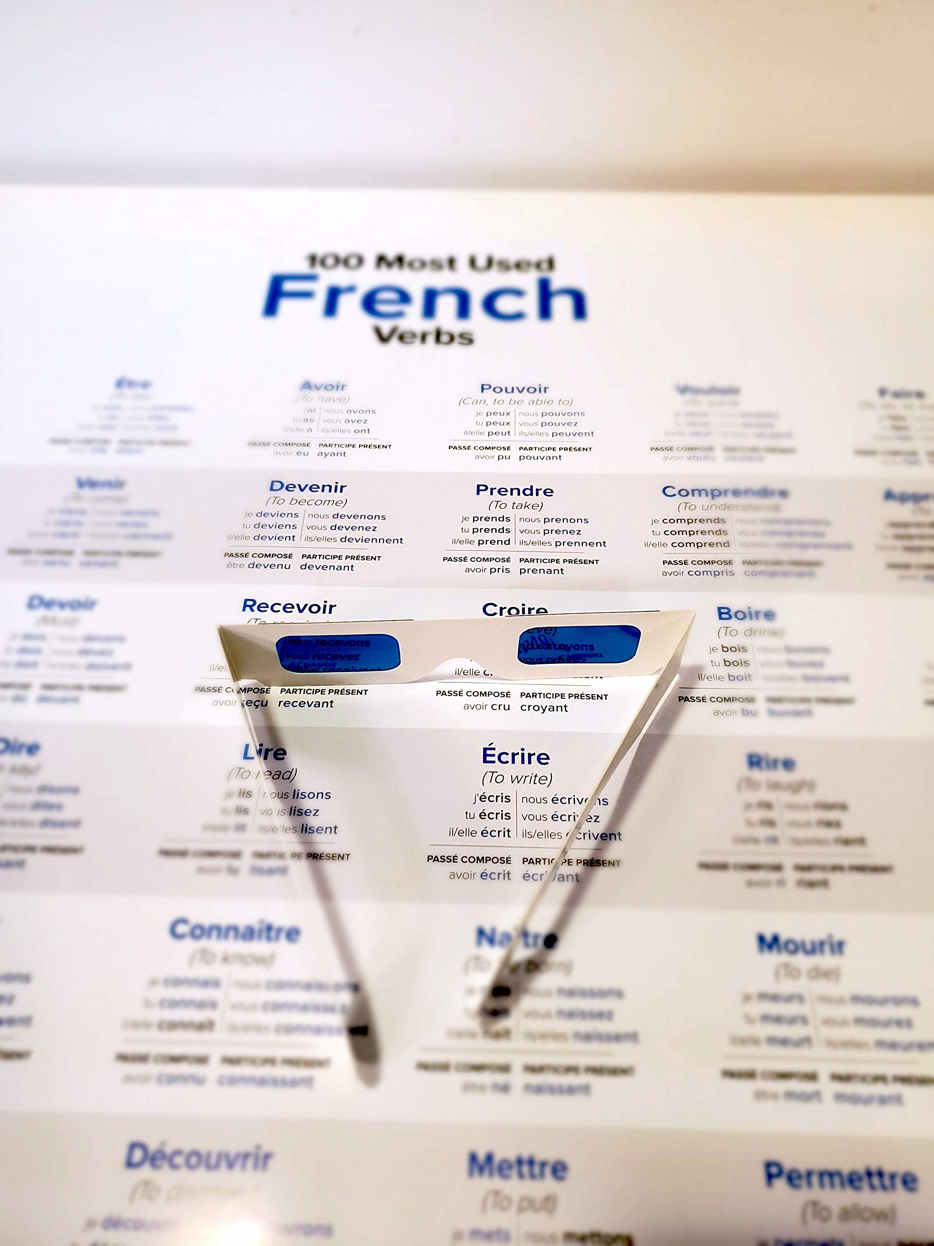 - “Magic” Verb-Decoder Glasses (included) cause all the IRREGULAR verb forms to disappear before your very eyes! Allowing you to test your knowledge and to help you remember which forms are regular and which are irregular!