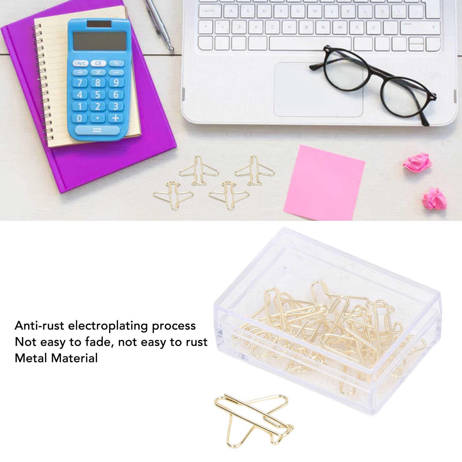 100pcs Paper Clips Portable Anti Electroplating Gold Cute Airplane Shaped Metal Paper Clip for Paper Document Sorting and Organizing, Office School Home Desk Organizer