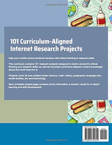 This workbook contains 101 engaging research projects designed to build critical thinking and research skills for middle school students in grades 4-8. The projects cover all core subject areas, including science, math, history, geography, language arts, social studies, art and technology. Students can investigate a wide variety of engaging topics, such as: The history, customs, interesting facts and natural wonders of countries such as Mongolia, Vietnam, Dubai, Ireland, Bolivia, and South Korea. The lives and influences of famous people including Ruth Bader Ginsberg, Yoyo Ma, Marie Curie, Colin Kaepernik, and Bill Gates. Facts about fascinating animals such as the pangolin, the Glass frog, the Bald eagle and the snow leopard. The significance of historical events such as the launch of Apollo 11, the Industrial revolution, and D-Day. The art and influences of artists such as Frida Kahlo, Henri Matisse, and Yayoi Kusama, among others. The significance of famous buildings such as the Taj Mahal, the Pyramids of Giza, Notre Dame cathedral and the Burj Khalifa. Mapping skills Budding scientists will love investigating the features of Kevlar, the biology or Surtsey Island, and the chemistry of solids, liquids and gases. History buffs will be fascinated by topics such as the impact of the invention of the water wheel, the compass and the Gutenberg Press. Students can also investigate unusual languages such as Pawnee or Kongo, the culture and history of the Komi people, Australian Aborigines and the Navajo. Dozens of additional topics provide a broad scope of learning for students of all ages. Each printable project-page contains all the information students need for in-depth learning and skill development. These project-based learning worksheets not only build critical thinking and internet research skills, they also build core grammar, vocabulary and writing skills. Your students won’t realize how many skills they are building while having fun! The book also builds digital literacy by including a checklist for evaluating the credibility of internet sources and every project in this book prompts students to list and evaluate the sources they use. These no-prep worksheets are suitable for both gifted learners and remedial or struggling middle school students grade 5-8. Get started right now and make learning fun!