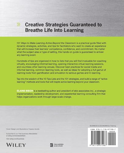 Fresh, creative strategies guaranteed to enliven online training 101 Ways to Make Learning Active Beyond the Classroom provides proven, practical strategies, activities, and tips for those tasked with facilitating training in any subject area among alternative settings. Based on the best-selling Active Training approach, these methods have been designed by recognized experts, and are guaranteed to enliven any learning event. Readers will find a toolkit of ready-to-use exercises and tips for organizing, conducting, and delivering active learning, in alternative settings on the job or around the world. The book is organized in a way that allows trainers to quickly and easily identify strategies that hold the most promise for specific situations. Each strategy is illustrated with a case example that demonstrates the concepts in action. Two hundred tips organized in twenty how-to lists will prove invaluable for using Twitter, coaching virtually, encouraging informal learning, opening interactive virtual learning sessions, and much more. Coverage includes best practices for social media and informal learning, common e-learning tools, as well as guidance toward using a full gamut of tools from gamification and simulation to serious games and m-learning. Active training encourages participants to use their brains to study ideas, solve problems, and apply what they’ve learned. It’s a fast-paced, fun, supportive, and personally engaging environment. This book shows training facilitators the proven techniques that help learners get more out of the material. Design a more engaging learning environment Improve delivery with optimized technology Utilize effective learning tools and practical strategies Learn best practices for social media, coaching, virtual learning, and more Learners need to figure things out by themselves, ask questions, practice skills, and transfer skills and knowledge to the job. With proven strategies designed by industry leaders, 101 Ways to Make Learning Active Beyond the Classroom is the indispensable guide to the design and delivery of effective alternative ways to learn.