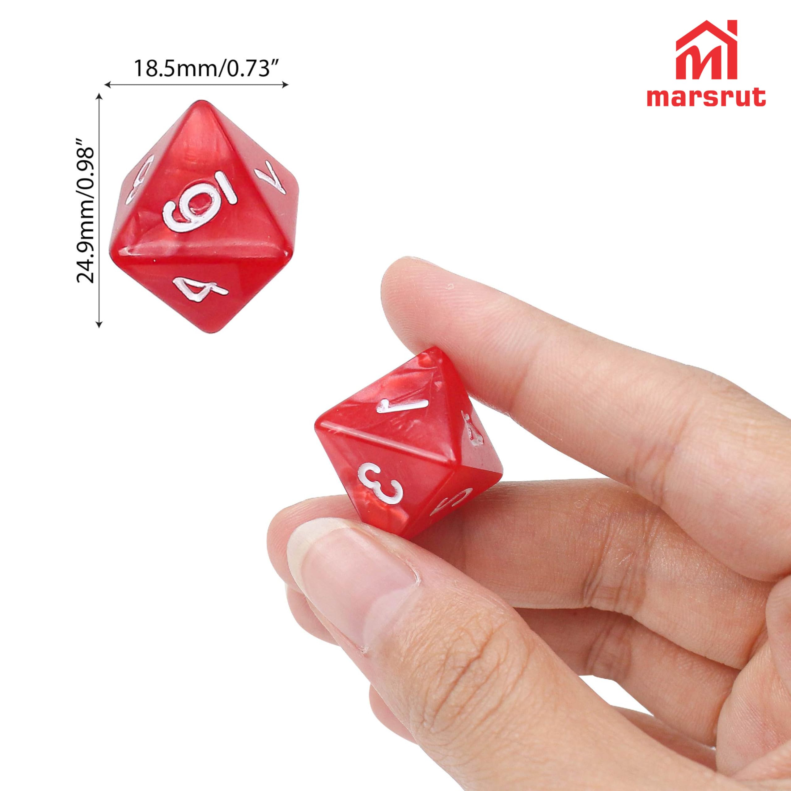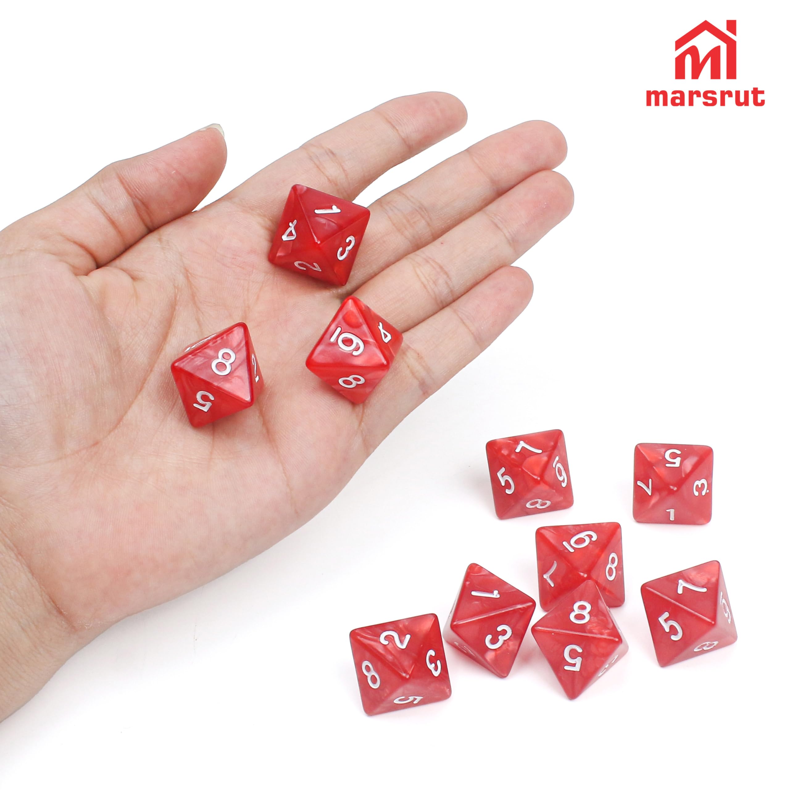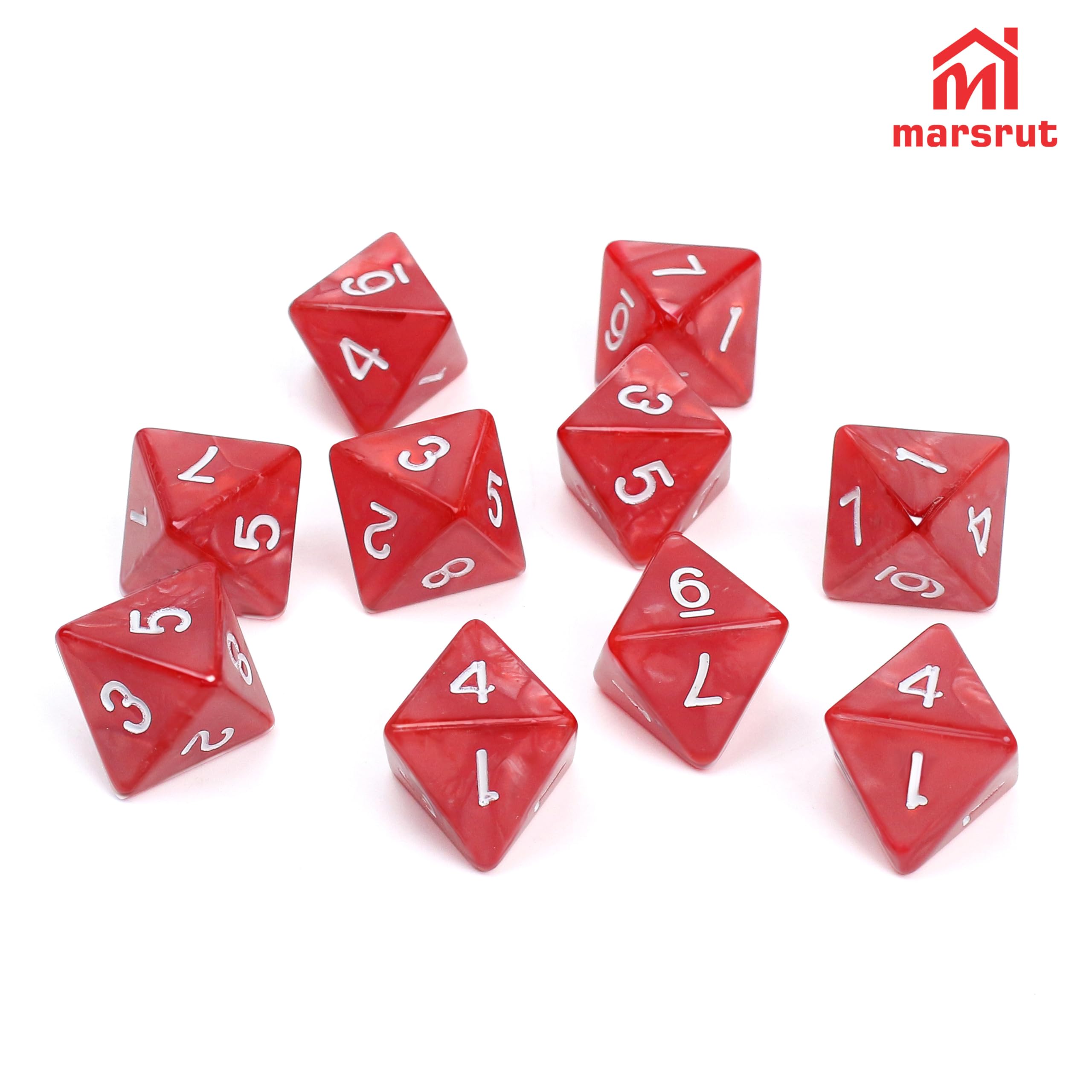 10Pcs 8 Sided Dice, D8 Assorted Polyhedral Dice Set with Numbers for Board Games DND RPG MTG Game Classroom Activities Party Table Gaming Fun, Mixed Assortment (Color: Red, 1 Inch)