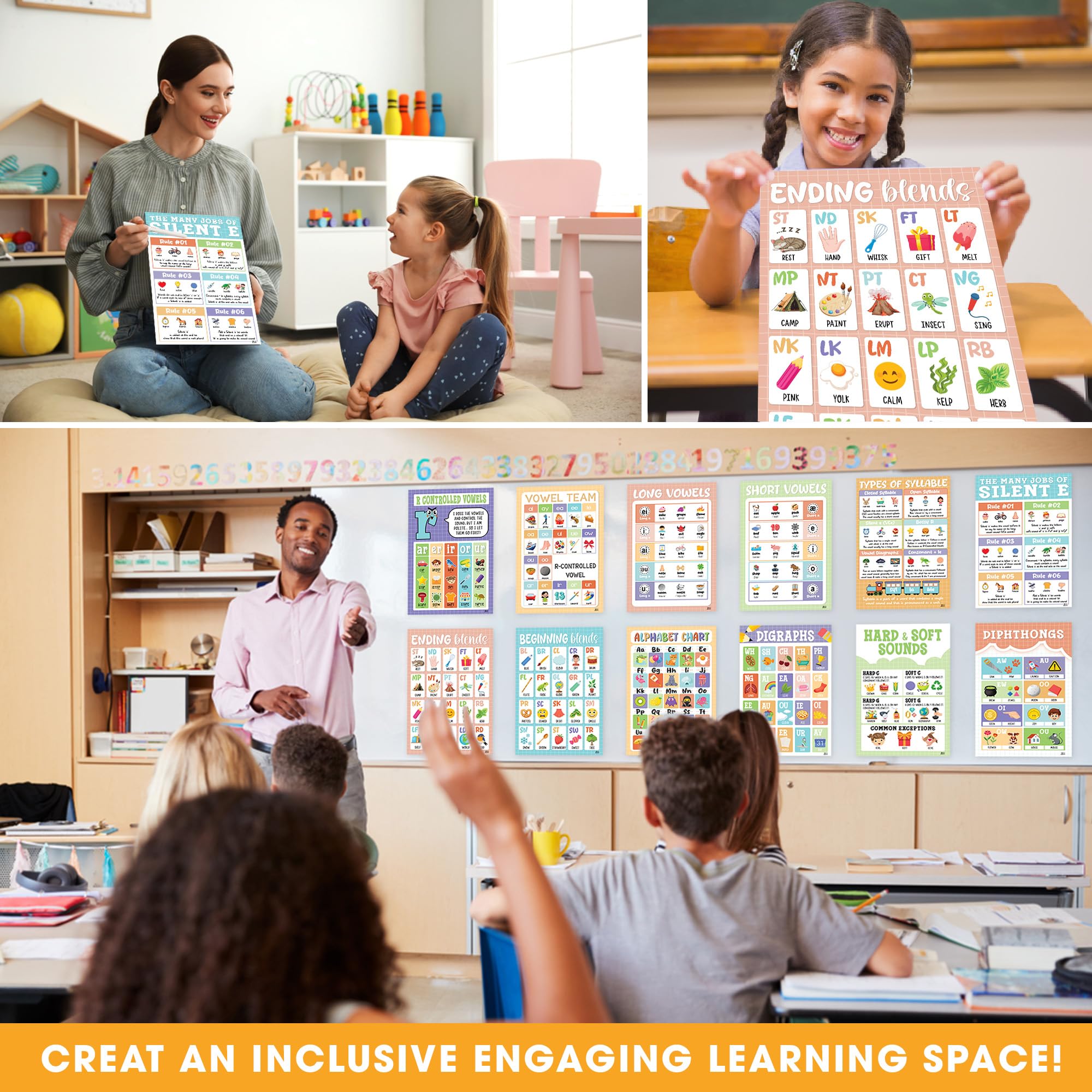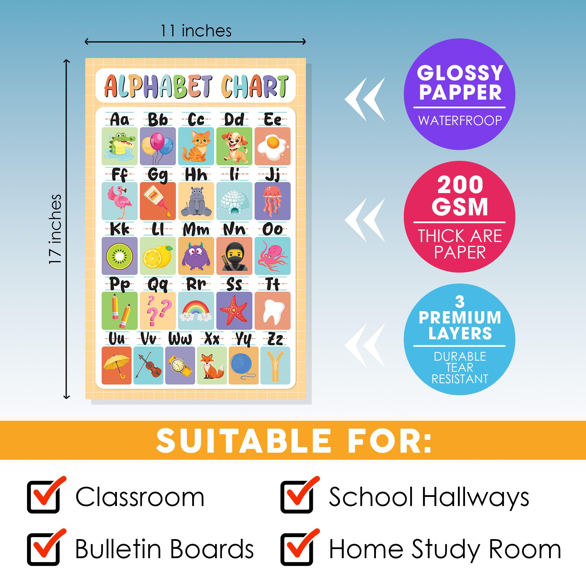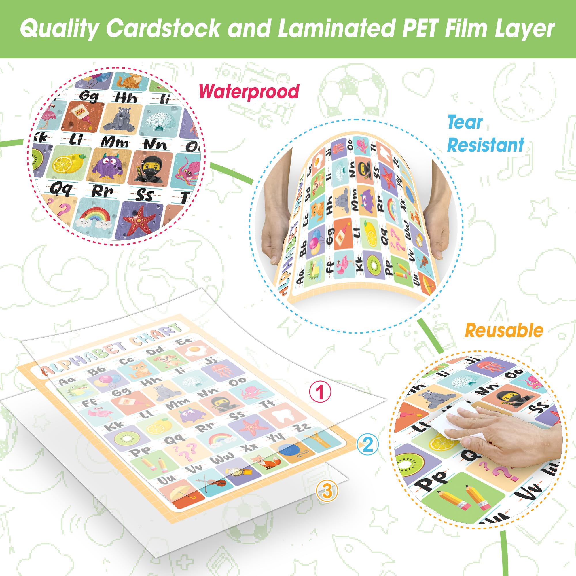 - RELIABLE QUALITY AND LARGE SIZE: Our posters measure 11 x 17 inches (27.9cm x 43.18cm). Made of 200 gsm GLOSSY paper and ensure exceptional color and clarity. They are coated with PET film, easy to clean. Durable, waterproof, tear resistant and reusable. Posters are printed on two sides with different colors, creating many choices for classroom decoration, and making the classroom more lively.