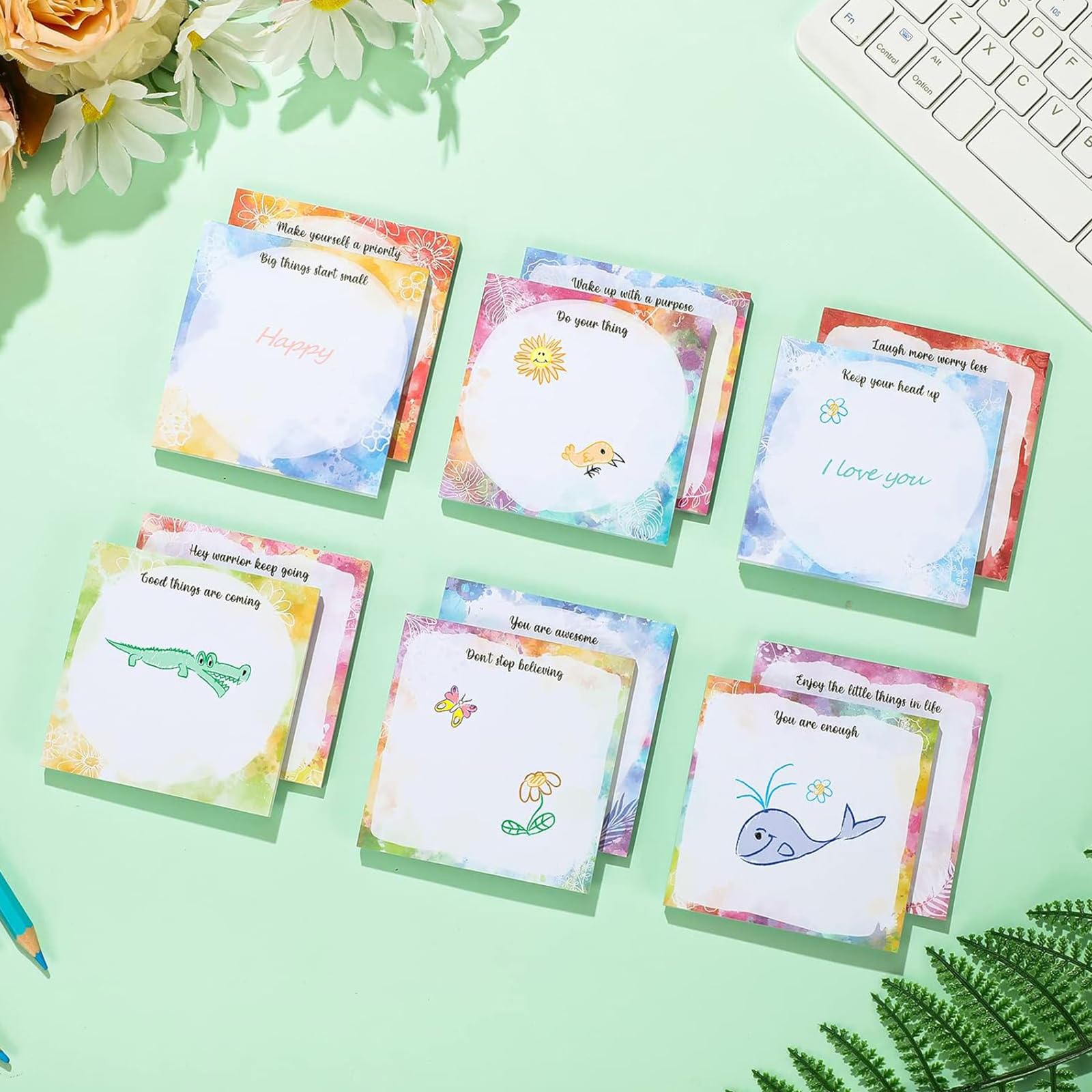 • Inspirational words: inspiring quotes are designed on the surface of the watercolor sticky notes, including [hey warrior keep going],[keep your head up], [wake up with a purpose], [Do your thing] , every time you see a sentence, you will have a powerful feeling that can encourage you to maintain a positive attitude towards life