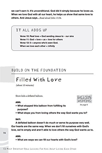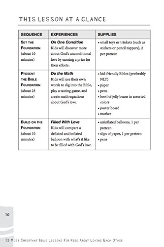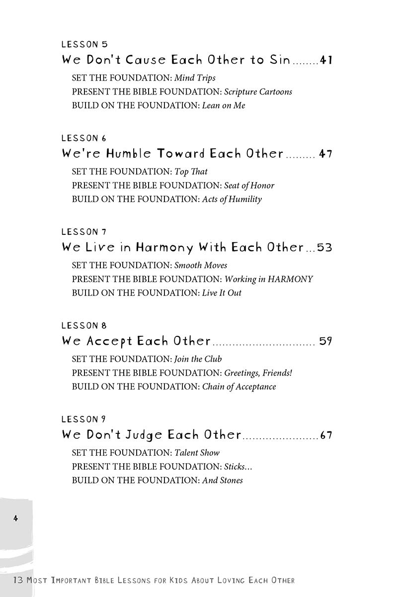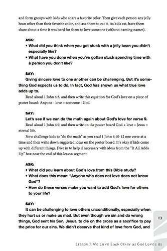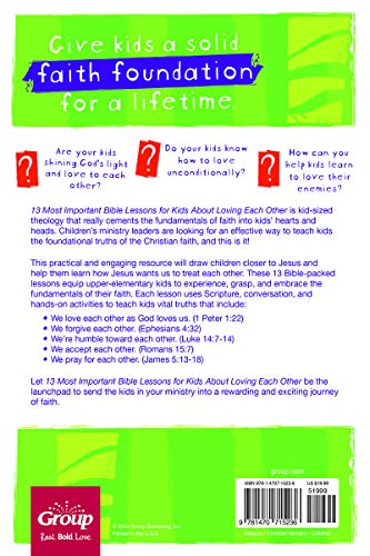 With the 13 Most Important Bible Lessons series, you’ll give kids a faith foundation that will last a lifetime and prepare them for a lifetime of spiritual maturity. This series offers kids’ Bible lessons that prepare upper-elementary school kids to weather the storms of life with a strong spiritual base. This children’s ministry resource not only gives children a solid understanding of their faith, it also equips their teachers to tackle the tough questions that inevitably arise. Each Most Important Bible Lesson is designed for kids age 8 through 12, and includes: * Lesson at glance * Opener * Scripture foundations * Relational applications * Closing prayer 13 Most Important Bible Series offers three volumes: 13 Most Important Bible Lessons for Kids about God (9780764470660) 13 Most Important Bible Lessons for Kids About Living for Jesus (9781470704278) 13 Most Important Bible Lessons for Kids About Loving Each Other (9781470715236)