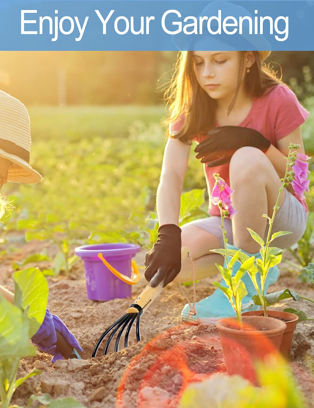 ERGONOMIC WOODEN HANDLE FOR EASY HANDLING — The ergonomic long wood handle comes with double rivet so it won’t slip off from the rake, allow you to dig deeper and provide you with a firm grip to reduce hand and wrist fatigue.