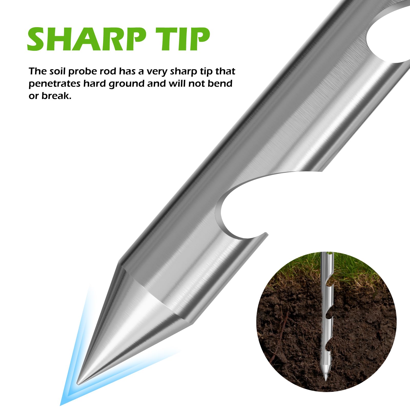 - Sharp Tip & Insulated T-Handle: The soil probe rod has a very sharp tip that penetrates hard ground and will not bend or break. The design of the T-handle with sheath allows you to reduce work fatigue when using it.