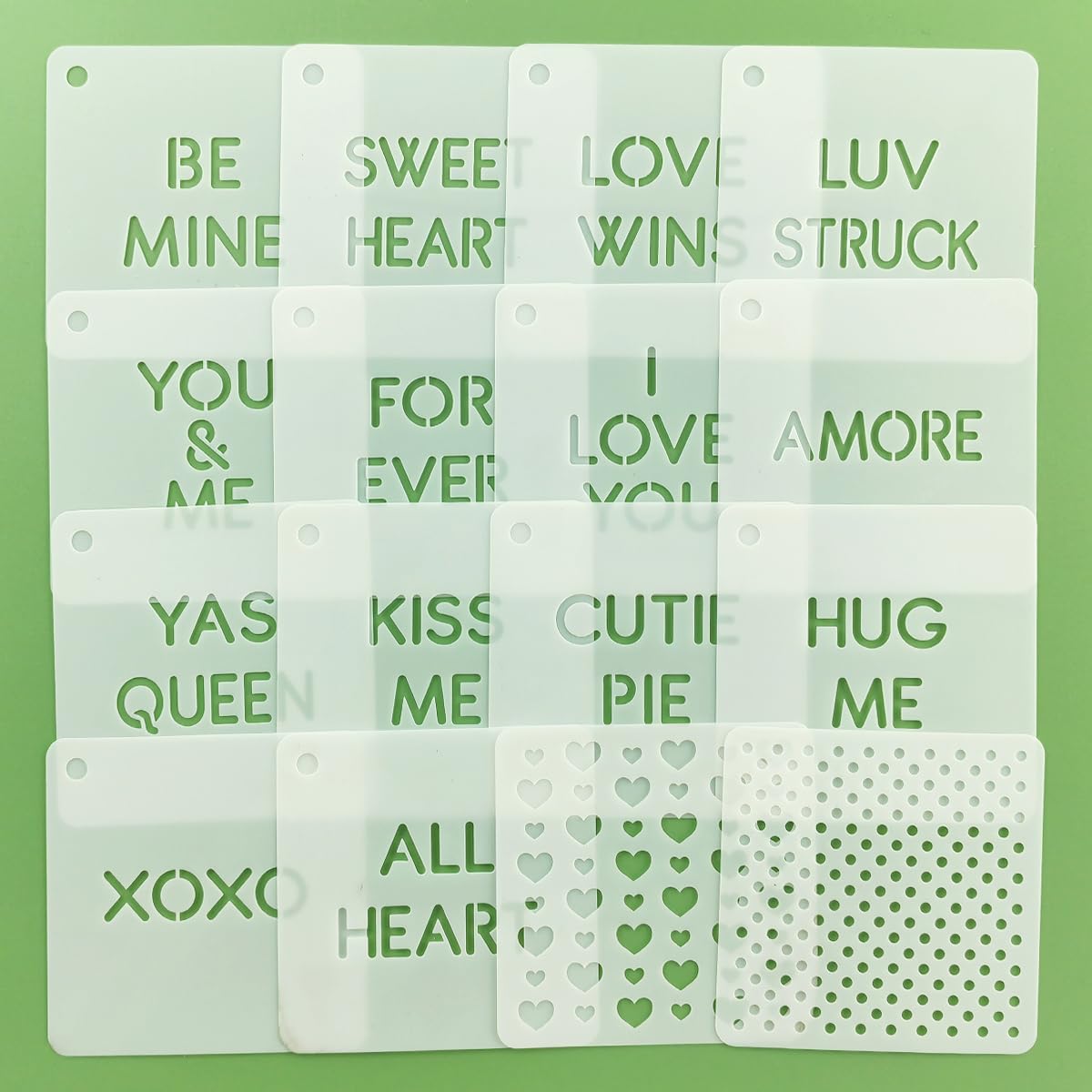 - Comprehensive Set of 16 stencils: each measuring 3×3 inches, is designed to help you express your affection in sweet, creative ways. Whether you’re surprising kids, delighting your significant other, or sharing joy with friends and family, these stencils are the perfect tool.