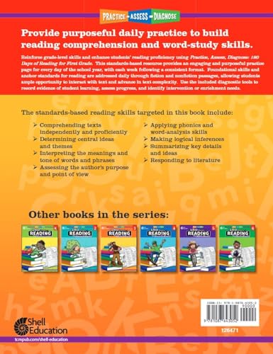 !Aprende durante 180 dias! Help Spanish-speaking first grade students improve their reading skills with meaningful and fun daily practice activities. 180 Days: Reading (Spanish): Uses short, interesting Spanish passages to help students practice reading comprehension, word study, and written responses Builds student confidence in reading with independent learning activities that focus on comprehension and fluency skills Supports Spanish speakers in at-home learning or small group instruction Includes standards-based activities, easy-to-follow instructions, and an answer key to quickly assess student understanding Parents appreciate this easy-to-use activity book that keeps their child invested in learning. The product is teacher-approved and perfect for homeschooling, to reinforce learning at school, or to overcome learning loss. Teachers rely on the daily practice workbooks to reach English learners. The ready-to-implement activities are ideal for tracking progress and engaging students. Additionally, the activities can be used for intervention skill building to address learning gaps.