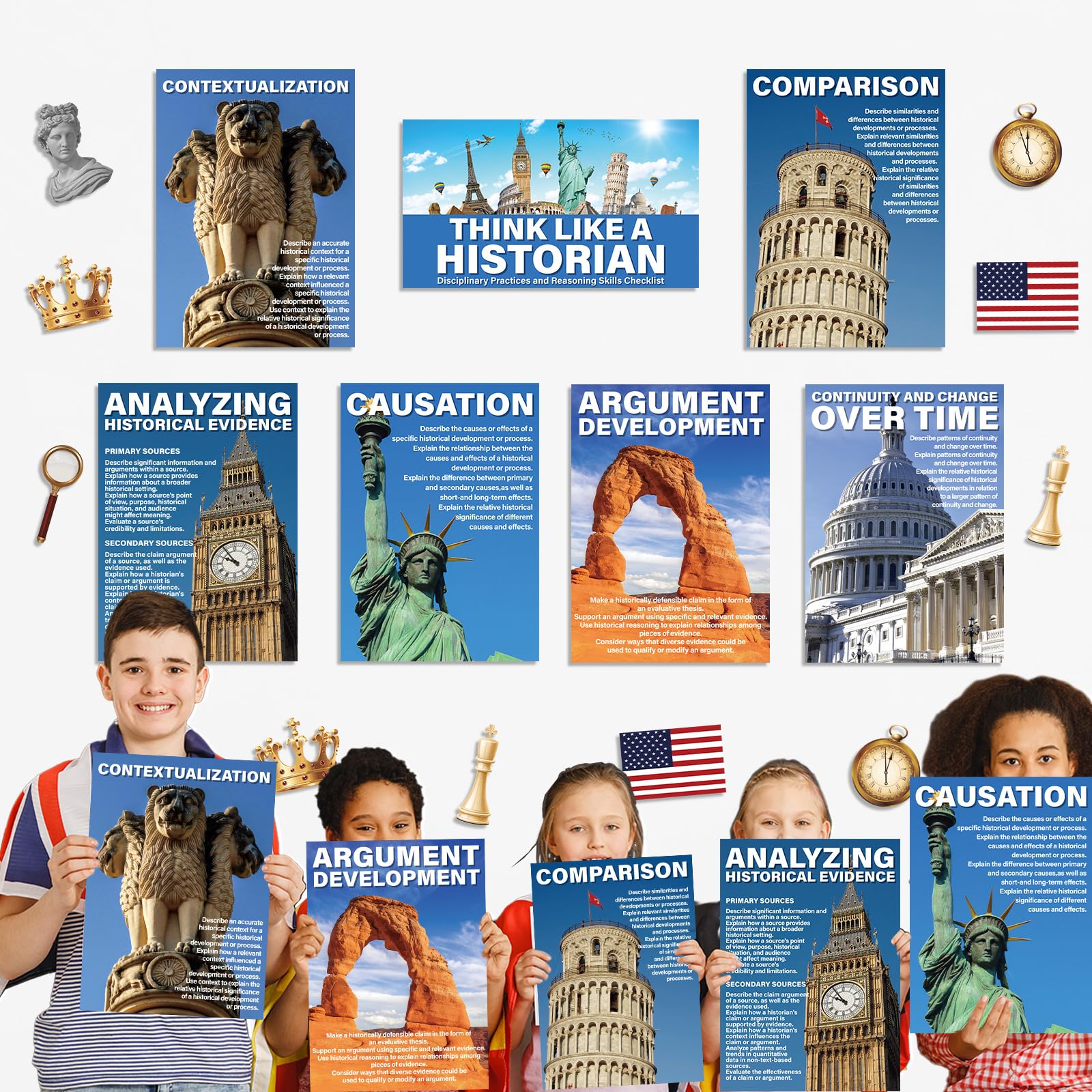 - Nice Design: the think like a historian posters are designed with steps in thinking about a problem, 6 parts such as “CONTEXTUALIZATION” “ARGUMENT DEVELOPMENT” and “COMPARISON” etc.; Thinking bulletin board for classroom can make your classroom or room full of learning atmosphere