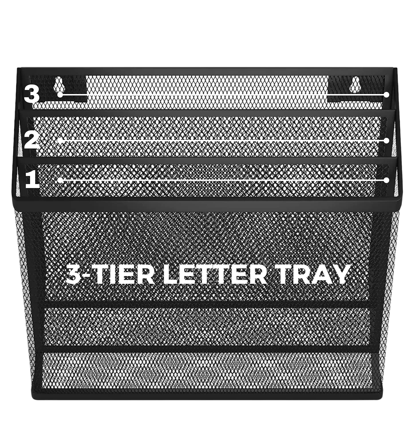 - 3 tier file organizer features a mesh design that can help organize and store files and papers.