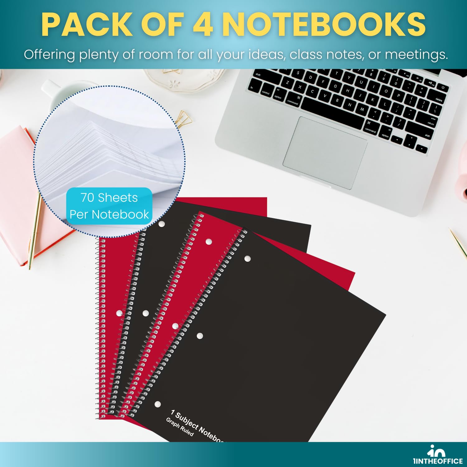 - Graph paper spiral notebook 4-pack is a great value for taking notes at work or school, each notebook contains 70 pages of high-quality paper with a sturdy cover.