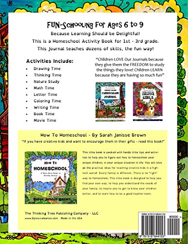 1st, 2nd & 3rd Grade Fun-Schooling Journal – Do-It-Yourself Homeschooling: Learning Activities for New & Struggling Readers (Home Learning guides) (Volume 4) B1, ideal for ages 6-10, (1st-3rd grade) This curriculum handbook is designed to be used along with library books, audio books, tutorials, documentaries, and classical music. Perfect for the young student in your life, especially new or reluctant writers. Make homeschooling fun for your young students with our unique approach while tapping into your child’s interest. This plan is perfect for beginner readers and struggling readers and even includes several pages of Art & Logic Games that help with dyslexia, reading confusion, and letter reversals. Seekerofgrace used this book alongside another curriculum: “My homeschooled 1st grader had completed his core work early this year and a friend recommended Fun Schooling journals by The Thinking Tree. After watching a few video reviews, I chose this one and it has been a fun supplemental way to end our school year based on his own learning interests (including supplemental library books & books we own). I am glad to get back to the more delight directed style of learning rather than the daily grind of workbook after workbook. This book has made school time enjoyable again! Definitely 5 stars.” Wendy’s son loves learning now: “Our kids love these journals. Each book has strong black lines that our kids really enjoy. I have a son that doesn’t like seeing alot of words on a page and when he sees that he immediately will go into tears because he feels it will take him so long to get through the page. With these books my kids are able to decide what they want to learn about, and the books direct them in the learning process. They enjoy coloring and doodling on each of the pages. Even while they don’t need to be working in the books. You don’t even need anything extra for this book, just your general school stuff like, pencils, color pencils, markers, etc. Our kids are so excited to be working in these journals.”(October 15, 2015)Language: EnglishISBN-10: 1518644155ISBN-13: 978-1518644153 This book is packed with activities that will help children to: 1. Focus on details 2. Think logically. 3. Be creative 4. Learn to draw 5. Explore and study nature 6. Pay attention 7. Have fun with early reading and writing skills 8. Play with numbers 9. Design things 10. Grow in a love for books 11. Learn from educational movies and tutorials. We developed this Journal for young homeschooling because little ones have been watching big brothers and sisters using our Do-It-Yourself Homeschooling Journals – and they all wish they had one too. So here it is! Everyone loves our Homeschool Journals. At first they were just for girls, and then the boys wanted them too. We listened. At first they were designed to be used for just 6 weeks, now you can use our 60 day journals year round! Just buy four! The Journals we just for kids – and then the moms were jealous… so now we have Homeschooling Handbooks for Moms! They are selling like hot cakes! So here is the 1st -3rd Grade Journal – have fun!