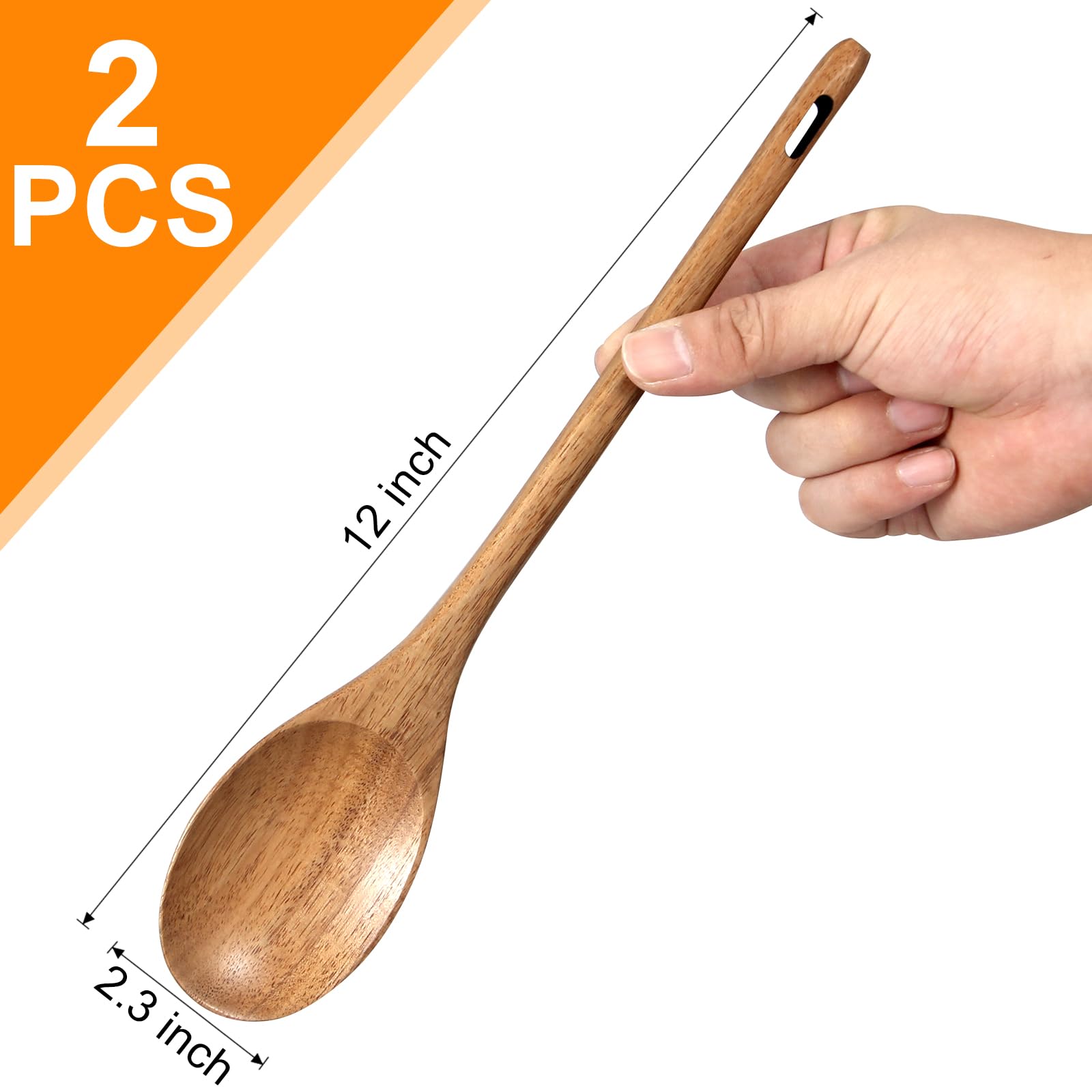 Perfect Size: Set of 2 oval wooden spoons, measuring 12 inches. nice size for your hands. Have a good length for use in cooking and eating, lots of customers use them everyday!