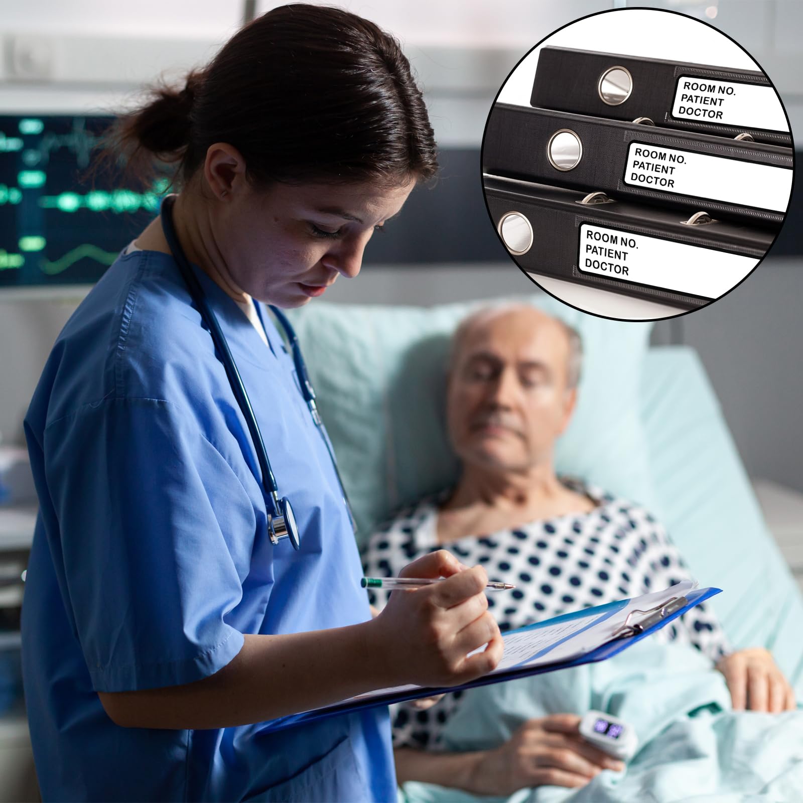 - PAPER MATERIAL:Patient Id Adhesive Medical Chart Labels are made of paper material.Feature a black outline for clear separation and easy reading, binder spine labels are made for ring binders.