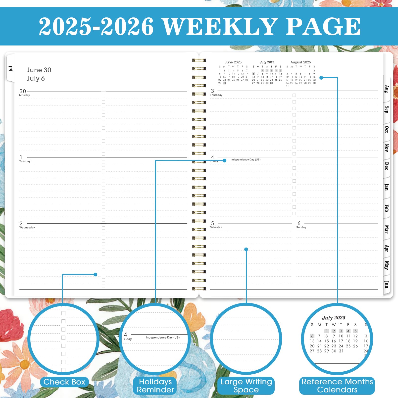 - Humanized Design – The flexible cover with colorful flowers of this 2025-2026 planner has soft tactility. Strong twin-wire binding and round corner design make it sturdy to use and easy to carry. Get this 2025 planner and make your life more efficient!