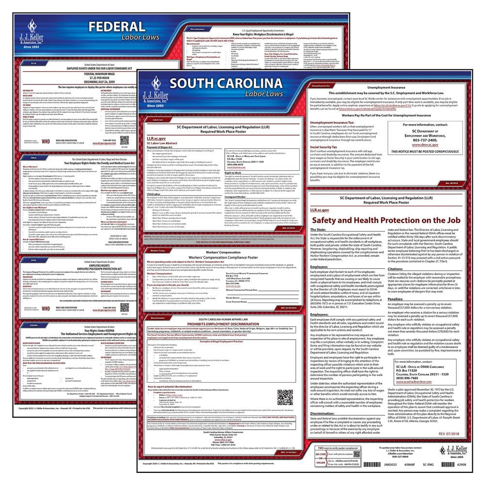- Get required federal and SC labor law notices including South Carolina labor law abstract, employment discrimination poster, workers comp poster, safety and health protection (SCOSHA), FMLA poster, federal minimum wage poster, EEO, EPPA, USERRA, and more for workplace compliance.