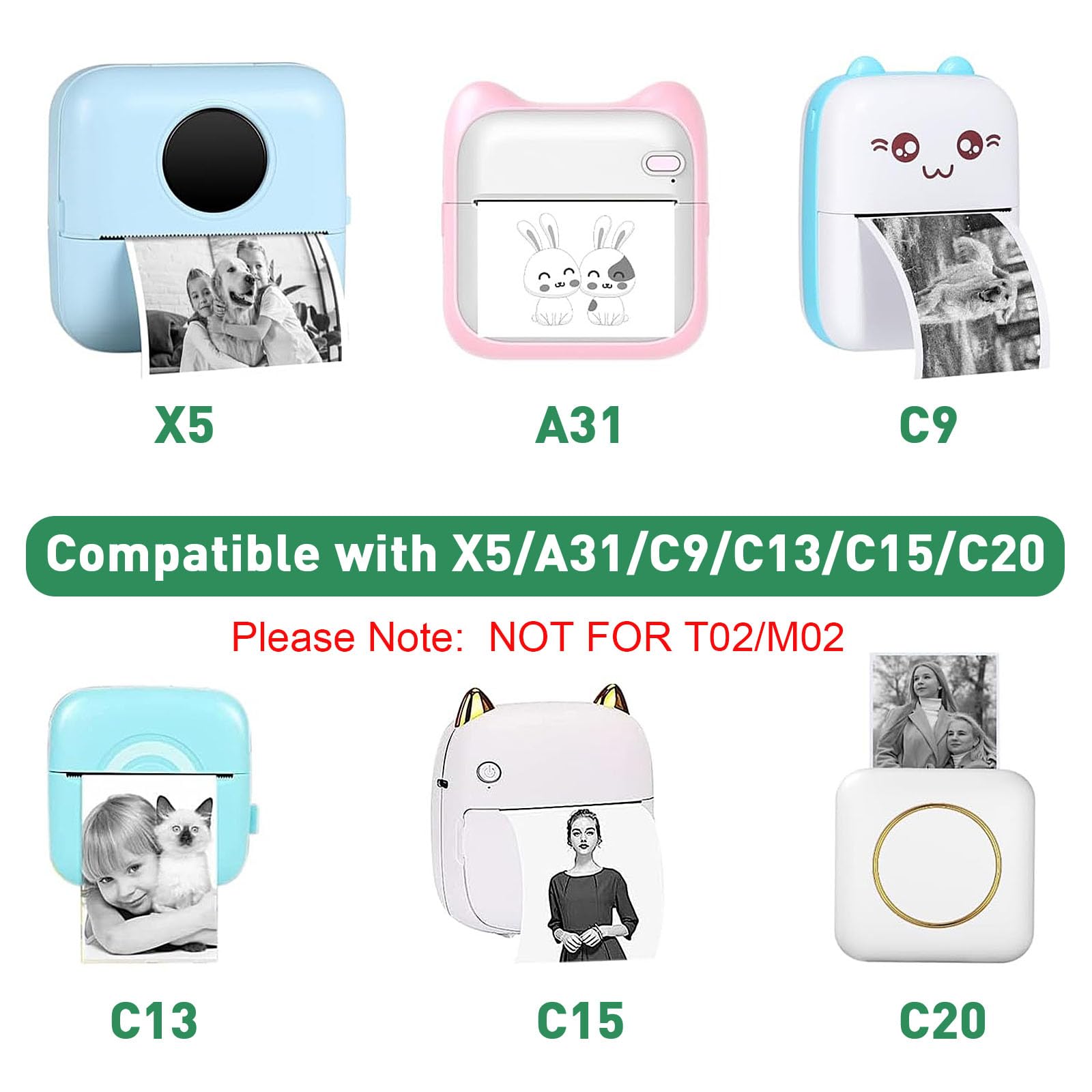 • Package Contains: Please note,NOT FOR T02/M02.You will receive 20 rolls of self-adhesive thermal printer paper rolls with the dimensions: 5.7cm*2.5cm. It is very easy to install and use this printer paper. Just pay attention to the correct mounting orientation and you will easily be able to print beautiful photos