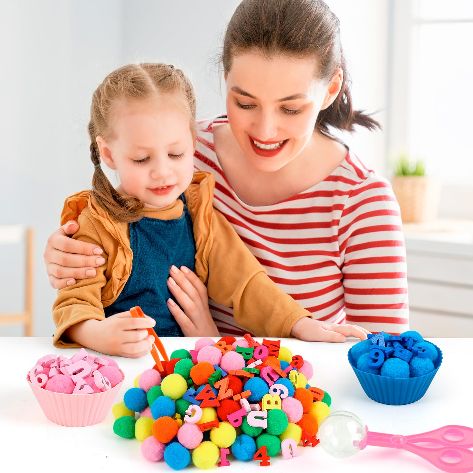 • Thoughtful Gift: the fine motor skill games of pom poms and wooden letters and numbers are adorable and exquisite, paired with bright colors, will be favored by both kids and adults, suitable as nice gifts given to them on summer, their birthday, Children’s Day, holiday and more