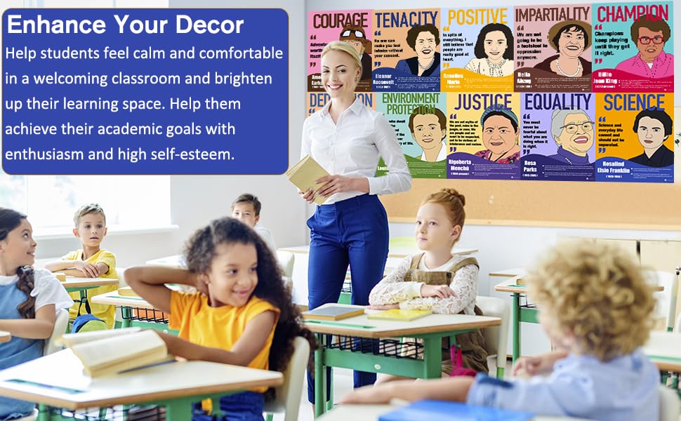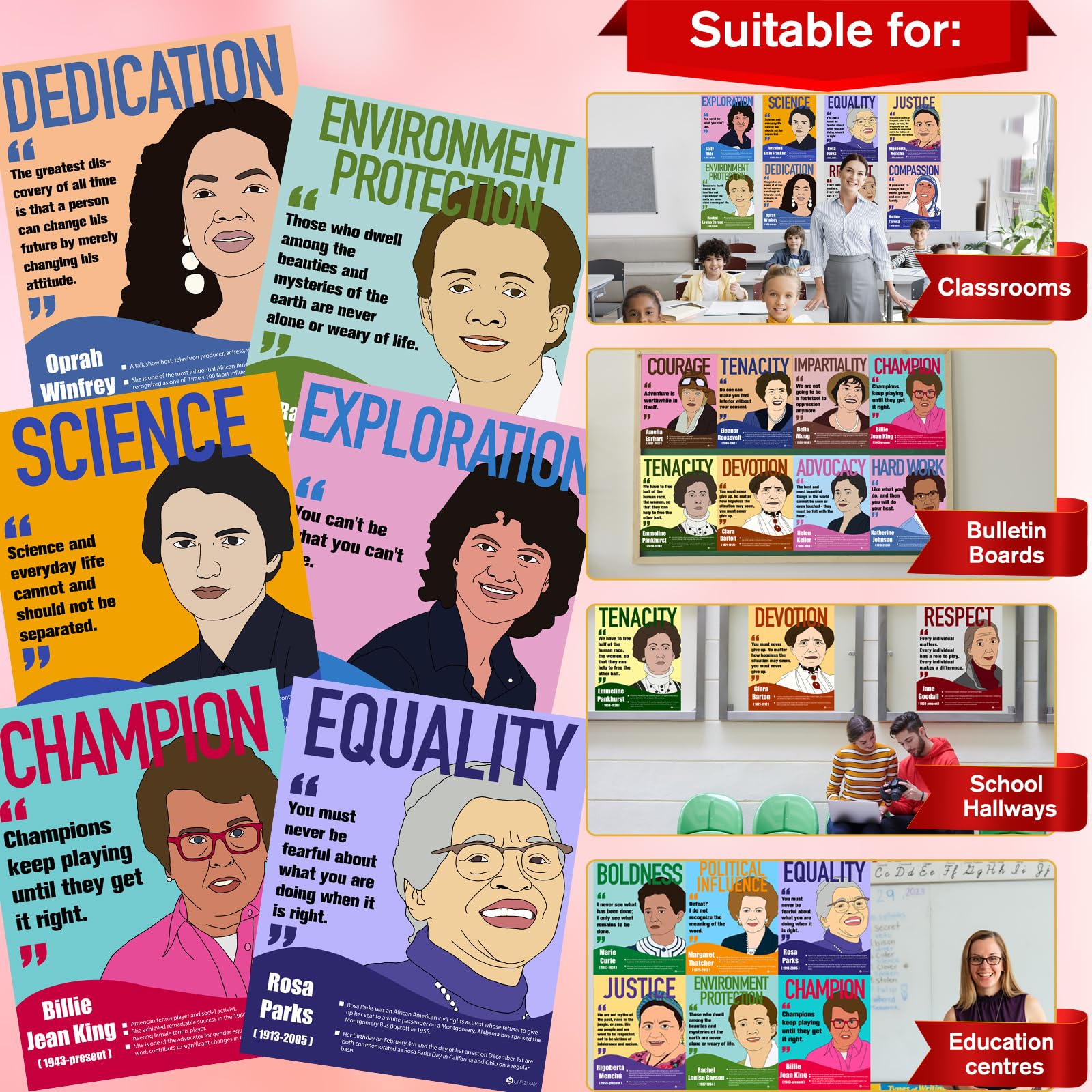 - MOTIVATIONAL WOMEN IN HISTORY POSTERS – Dive into the lives of remarkable women with our inspirational posters. Each women in history poster showcases biographies and famous quotes, printed on sturdy 250gsm thick coated paper for lasting quality. Perfect for classroom decoration, they serve as impactful social studies decorations, history classroom decorations, and overall classroom wall decor.