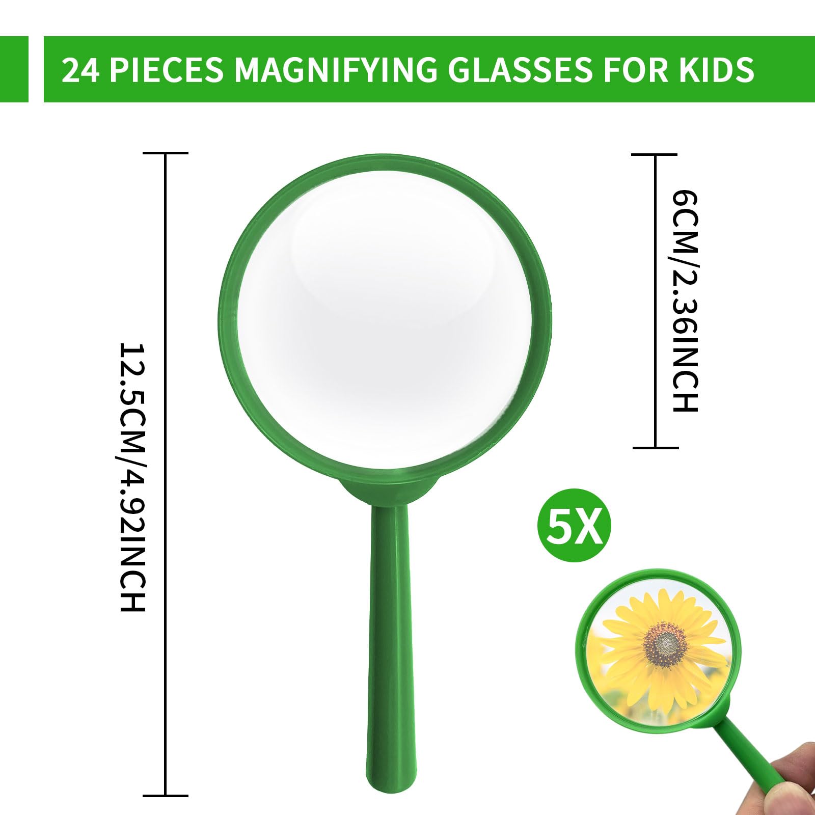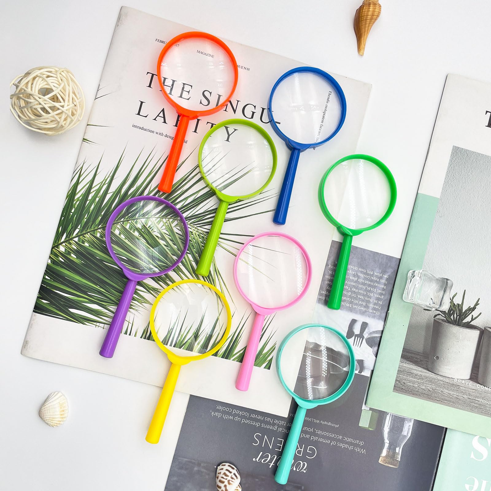 Package Including: You will received 24Pcs colorful magnifying glasses for kids; 8 pieces each color include yellow, pink, orange, purple, dark green, light green, grass green and blue.