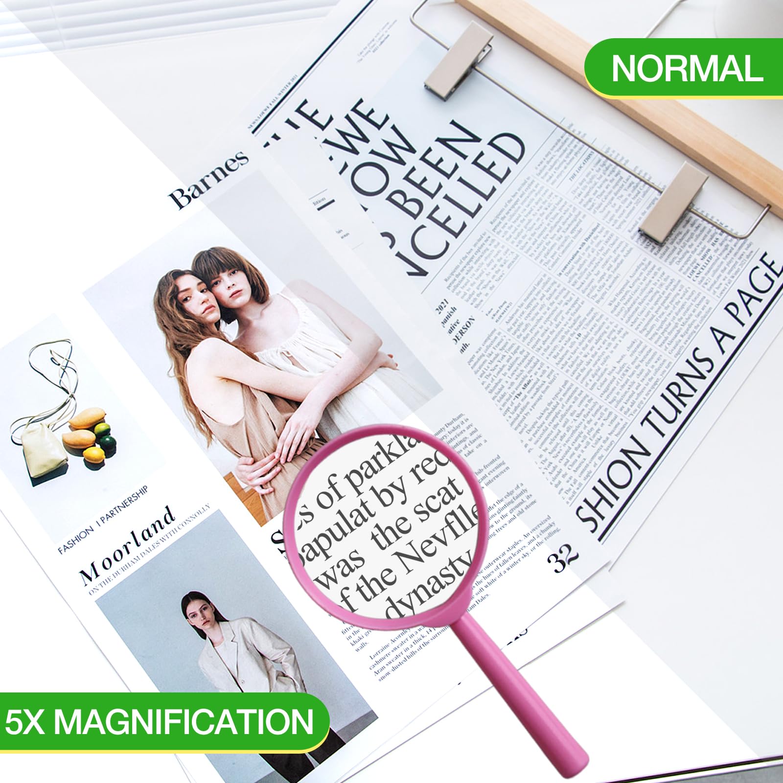 Premium Material: The kids magnifying glass is made of acrylic material, clear and not easy to deform; 5X hand lens is suitable for children use and not hurt the eyes.