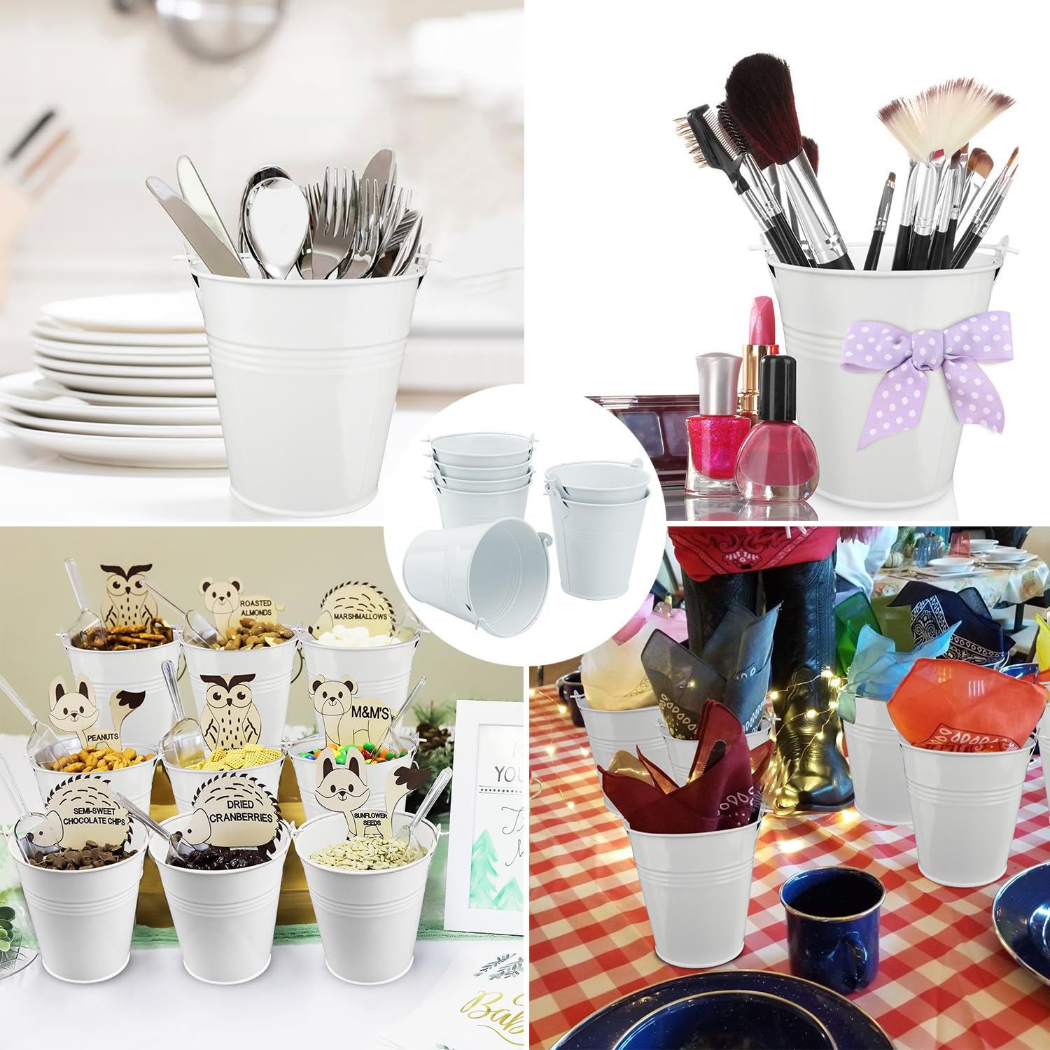 - Perfect for party favors – GENHAKON small white metal buckets are perfect containers to dish out mouthwatering birthday cookies and candy. Cute, sturdy, and downright delightful, metal buckets for party give you enough room to pack all your lovingly made goodies