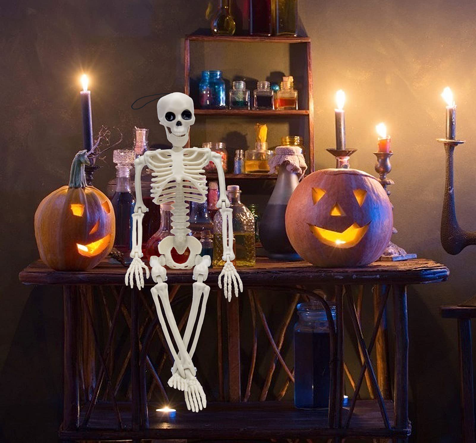DIY the Pose: All joints of the skeleton decor are adjustable, such as shoulder joints, elbows, Knee joint, wrists, neck, etc, you can DIY the pose you want