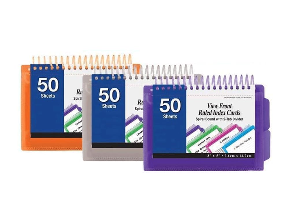 - View Front Ruled Index Cards Spiral Bound with 2-Tab Divider