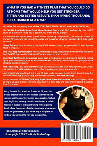 Want to Get Super Fit and Strong but No Time For The Gym, Stuck at Home or Traveling? No Problem! Now you can get totally fit, strong and tone without a gym. The 30 DAY TotalBody Super Circuit Home Workout Plan was created to give you the results you desire without payingthousands for a top trainer or spending hours in the gym. This pro-created home workout plan gives you a day-by-day exercise routine to follow with complete pictorials for both a beginner or advanced fitness level. Simply follow along and in just 7 days you’ll feel more energy and stronger, In 30 days you’ll see andfeel amazing results. Plus, to keep you on track. This complete workout plan gives you 2 FREE bonuses.A fitness and healthy habits planner to keep you on track. Second, a belly flattening diet plan to stop sugar cravings, flatten your belly and lose unwanted pounds from head to toe. Get your copy today and start your path to a stronger, fitter and sexier you.