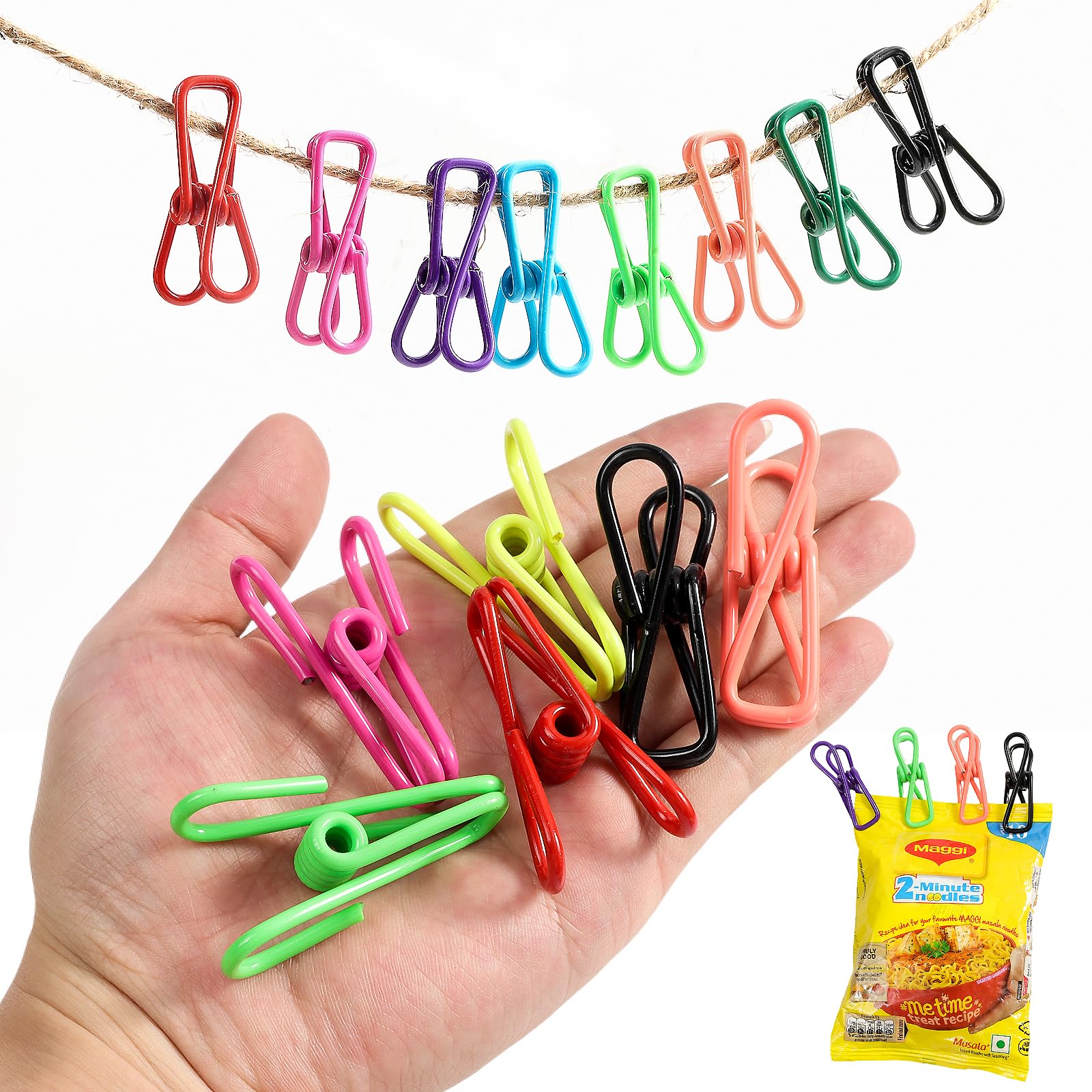 • MULTIPURPOSE: Chip clips can be widely used in our daily life, ideal for outdoor clothesline, food bag sealing, crafts, photo display, paper organizing, wall decoration and so on.