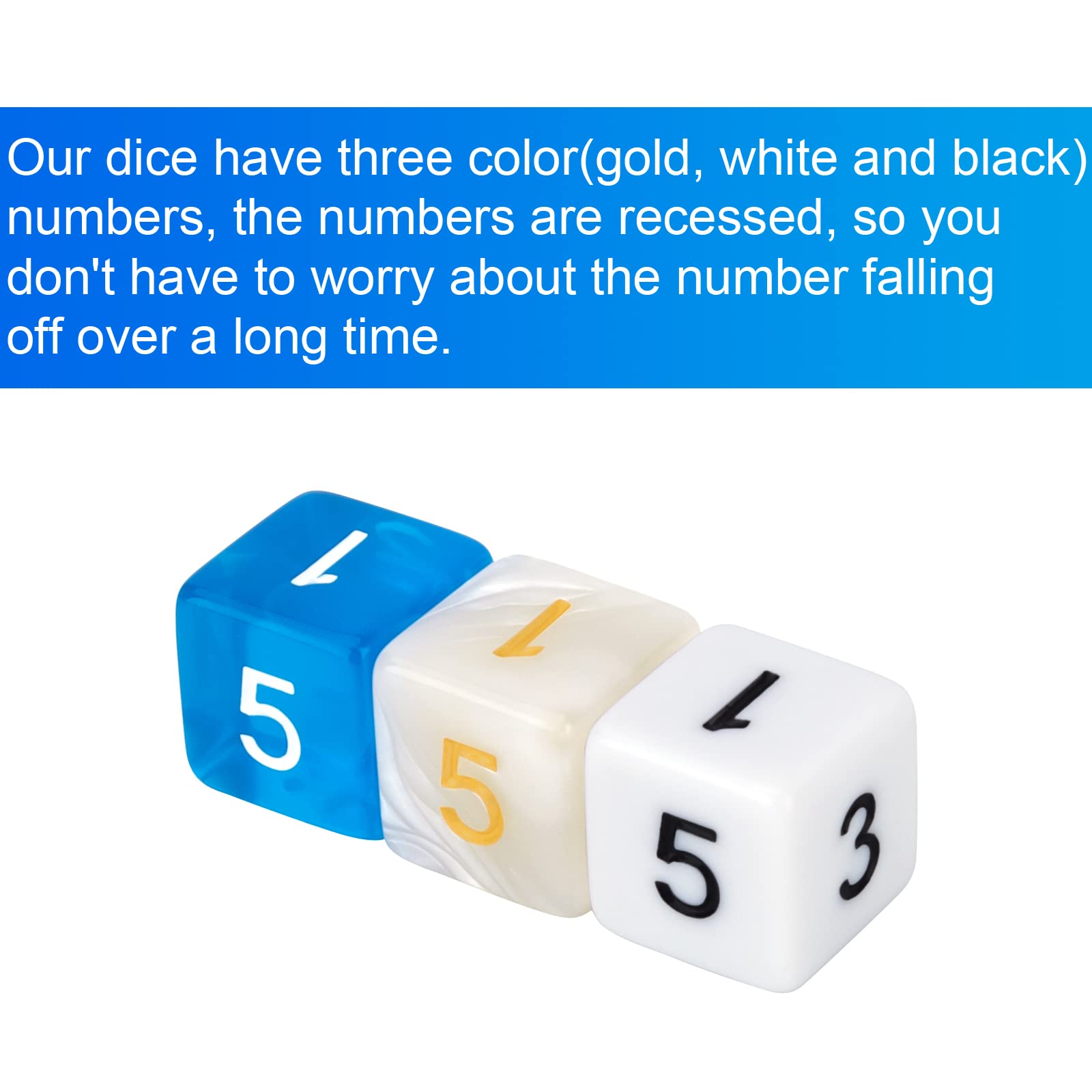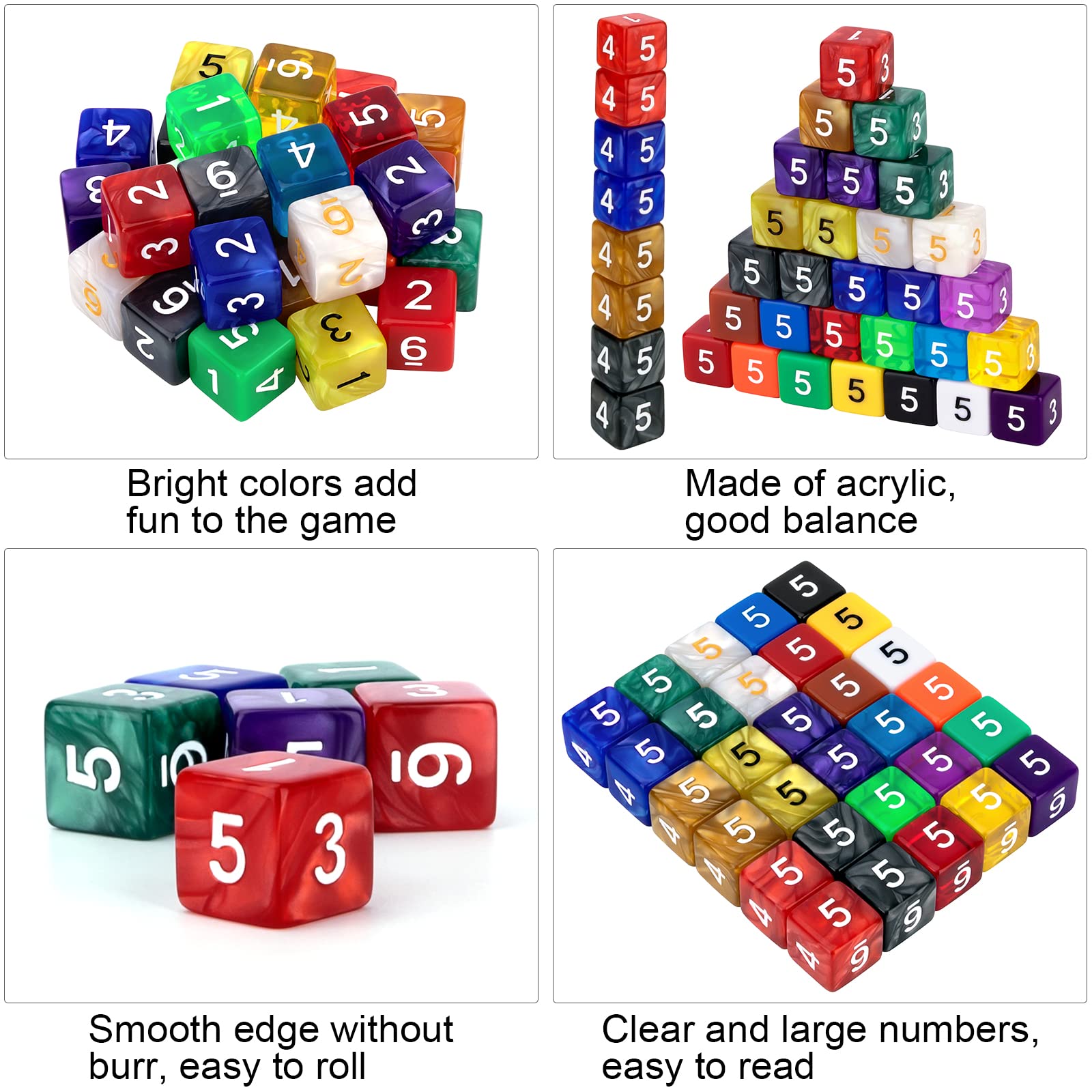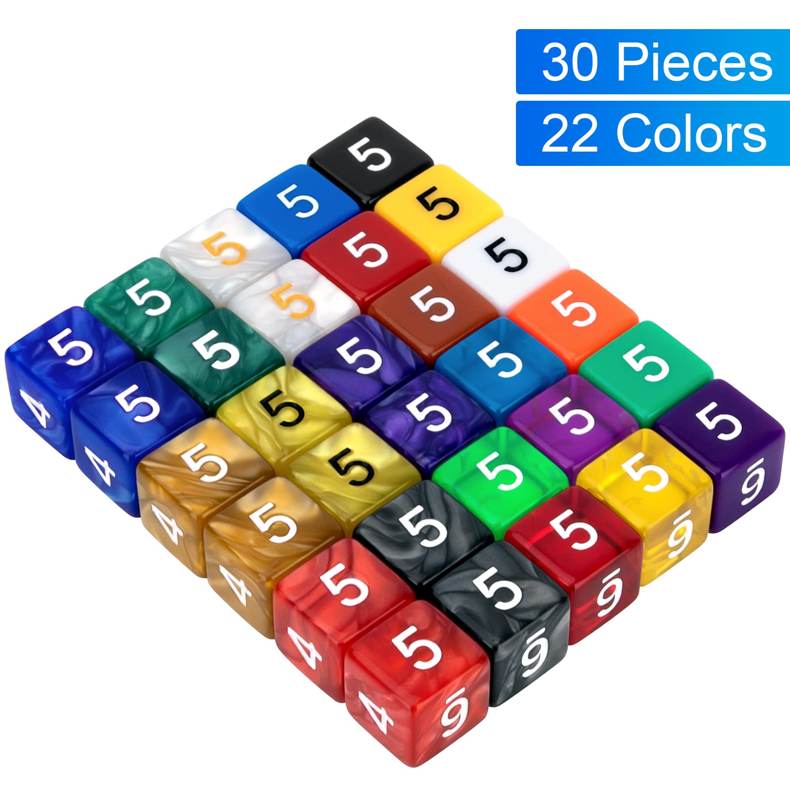 You will receive 30 pieces 6 sided polyhedral dices, please refer to the second picture for color and quantity. What you see is what you receive.