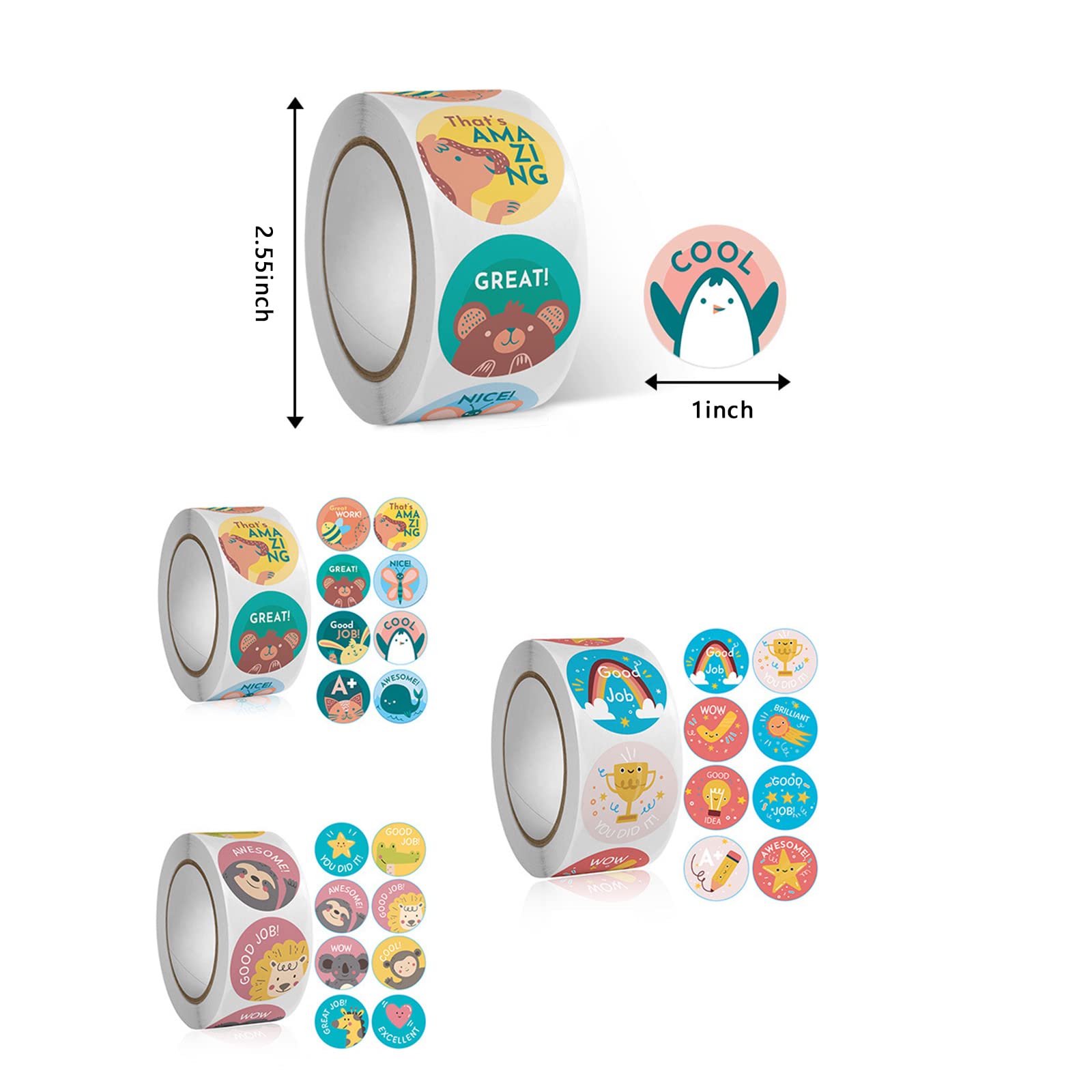 GREAT VALUE: You will receive 6 Rolls Reward Stickers, total 3000 pcs round removable color-code motivational stickers, 500 label stickers per roll. Sufficient quantity and various Cartoon Animals Stickers to encourage Student to behave better in the future.