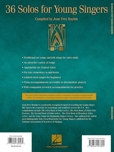36 Solos for Young Singers – Vocal Sheet Music Collection Explore a wide variety of traditional, folk, and classical songs with 36 Solos for Young Singers, thoughtfully arranged by Joan Frey Boytim. This comprehensive vocal sheet music book is ideal for late-elementary to mid-teen singers, featuring accessible solos perfect for contests, auditions, and classroom performances. Intermediate-level piano accompaniments ensure students can perform confidently. The included online audio provides professionally recorded accompaniments, allowing young singers to practice anywhere. With the PLAYBACK+ feature, users can slow down tracks, set loop points, and change keys to suit their learning pace. Whether you’re a teacher seeking a valuable music teacher resource or looking for a gift for pianists and vocalists, this Hal Leonard songbook is an essential addition to any collection. Songs Included: April Fool * The Blue Bells of Scotland * Country Gardens * Cradle Song (Mozart) * Cuckoo * Dandelions Gold and Green * The Desperado * MacNamara’s Band * Old King Cole * The Quest * Red River Valley * Sidewalks of New York * Sweet and Low * Toyland * Home on the Range * Skip to My Lou * The Weather * Cradle Song (Schubert) * Softly Sleeping * Tell Me Why * Peace of the River * I Know Where I’m Goin’ * He’s Got the Whole World in His Hands * Down in My Heart * Longing for Spring (Mozart) * Old Dog Tray * Spinning Song * The Glendy Burk * Some Folks * Sit Down, Sister * The Sea Breeze * Sweet and Low * The Keys of Heaven * Dancing * The Band Played On *