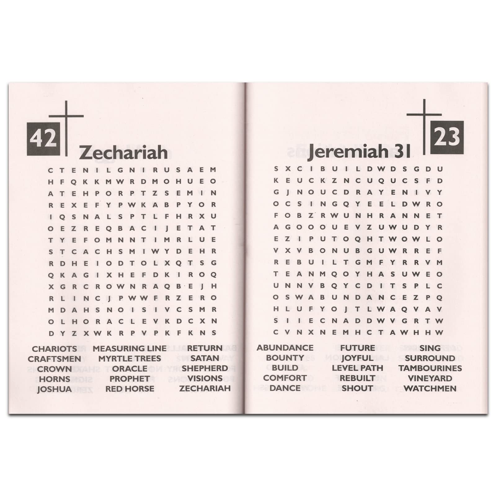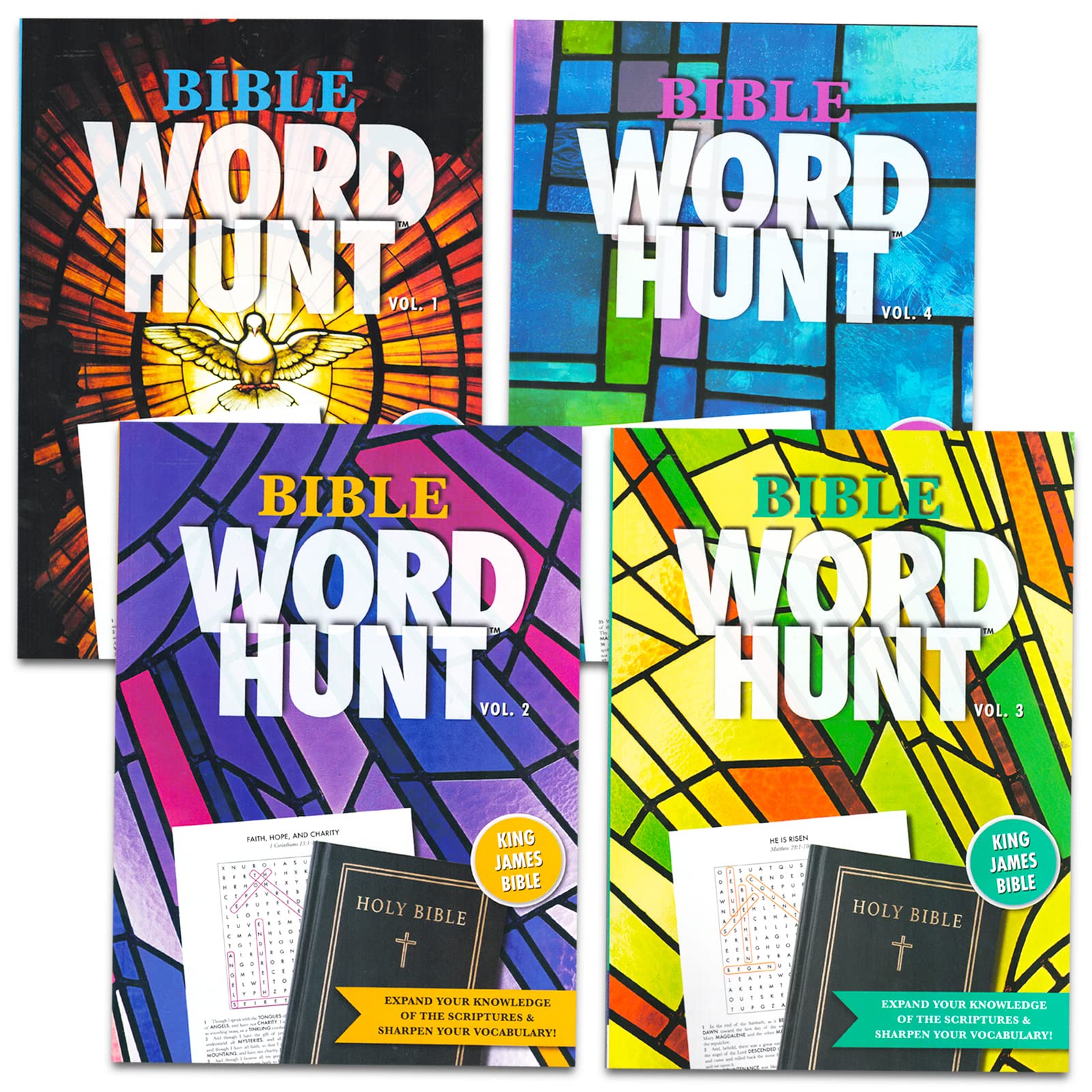 - 4 Bible word search puzzle books filled with stimulating word puzzles — words cleverly hidden in every puzzle. Each book measures 8×11 inches and large print puzzle book contains 80 pages.