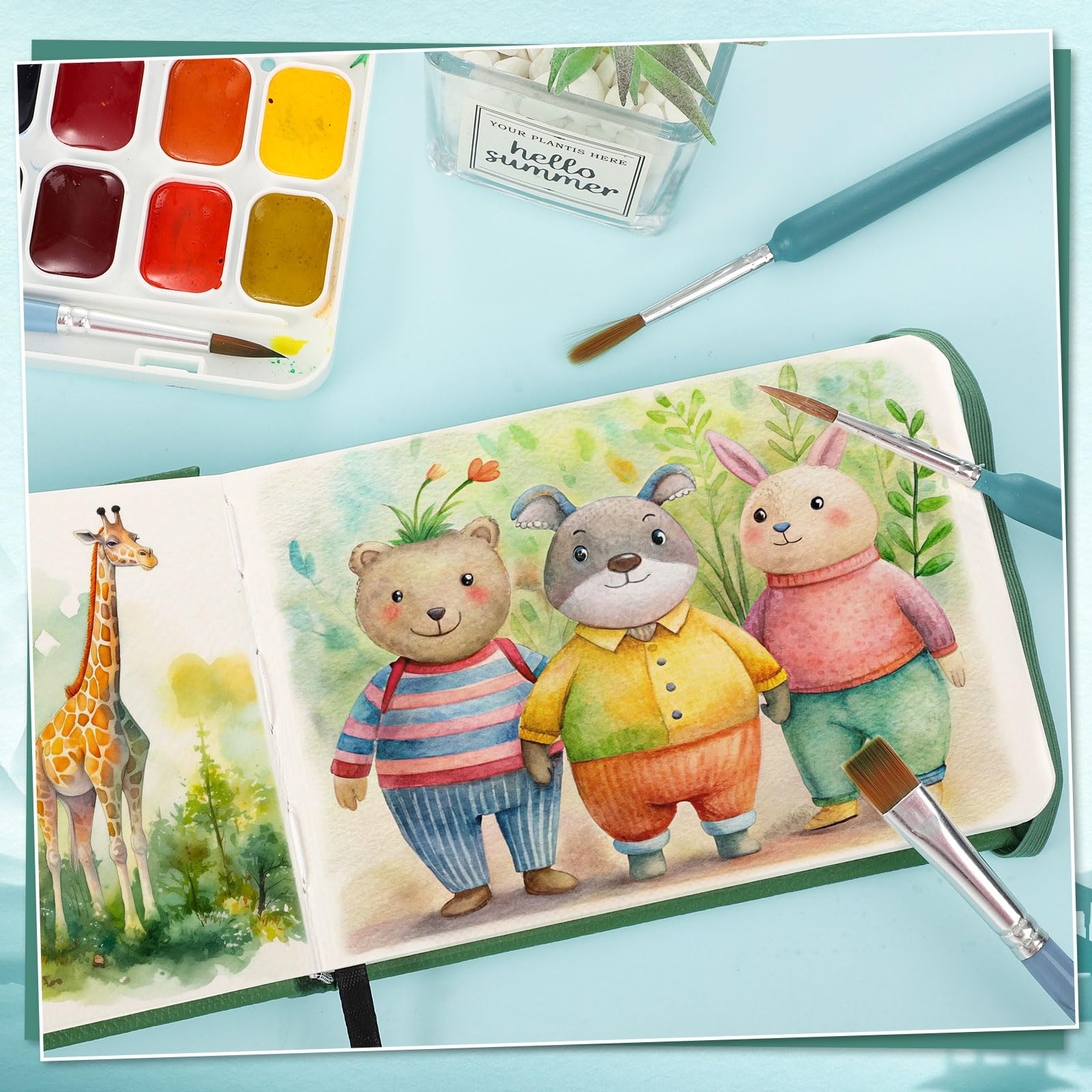 - [(Practical Design)] The watercolor paper sketchbook is made of sturdy and durable thick cardboard and green leather material cover, which can support your painting and drawing anytime and anywhere. The rounded corner design can avoid scratches, and the wire-bound design is accompanied by micro-holes so you can tear it easily. without damaging the artwork.