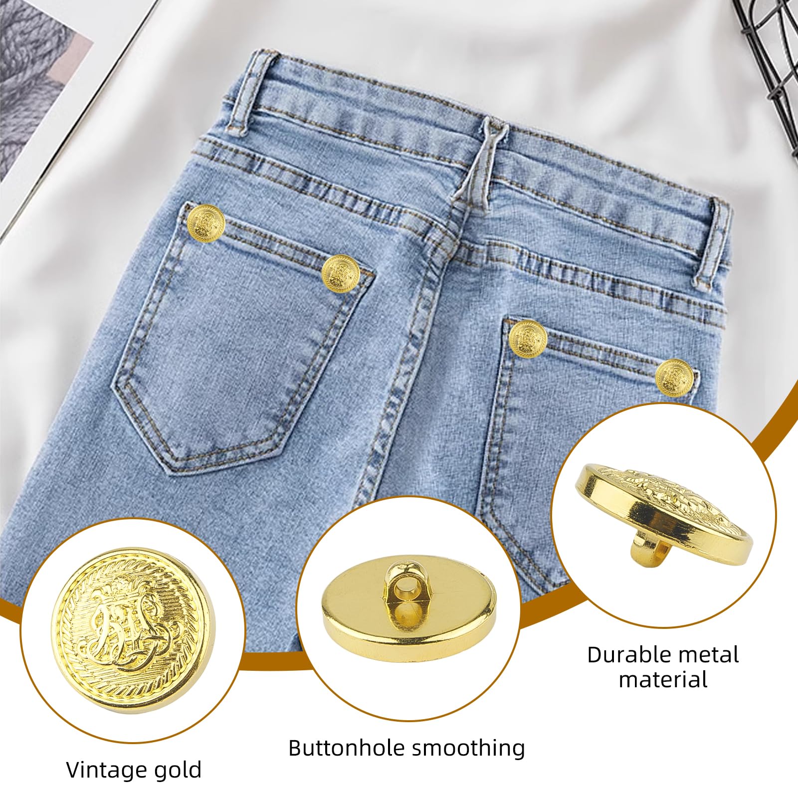 - Wide Range of Applications: Perfect for DIY projects, these gold buttons for sewing are versatile and available in a variety of styles, making them perfect for blazers, wool sweaters, and other clothes.