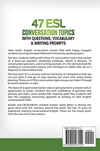 47 ESL Conversation Topics with Questions, Vocabulary & Writing Prompts: For Beginner-Intermediate Teenagers & Adults (ESL Conversation and Discussion Questions)