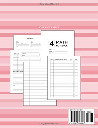 4th Grade Math Notebook: Primary Composition Lined Pages with Wide Ruled Papers for Writing Notes: Reminder of Due Date for Assignment, Homework, … For Grade 4 Girl’s Arithmetic Class Subject