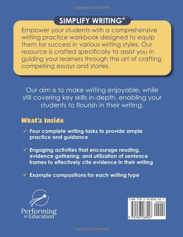 Empower your 4th grade students with a comprehensive writing practice workbook designed to equip them for success in various writing styles. This workbook includes activities for narrative, informational, persuasive, and text-analysis writing. Our resource is crafted specifically to assist you in guiding your learners through the art of crafting compelling essays and stories. This can be used for homeschool or in any type of classroom. Our aim is to make writing enjoyable, while still covering key skills in-depth, enabling your students to flourish in their writing. What’s Inside: Four complete writing units to provide ample practice and guidance Engaging activities that encourage reading, evidence gathering, and utilization of sentence frames to effectively cite evidence in their writing Example compositions for each writing type