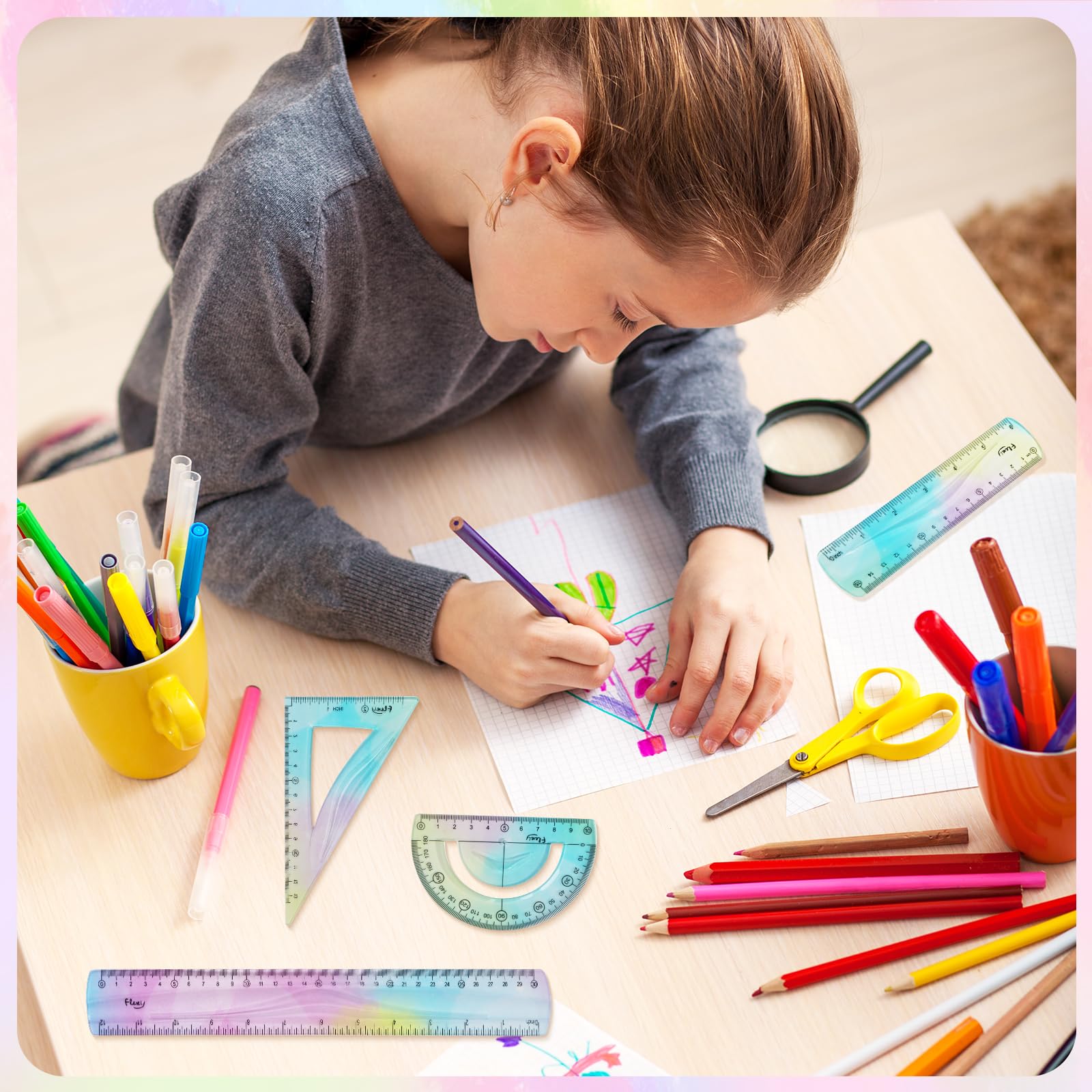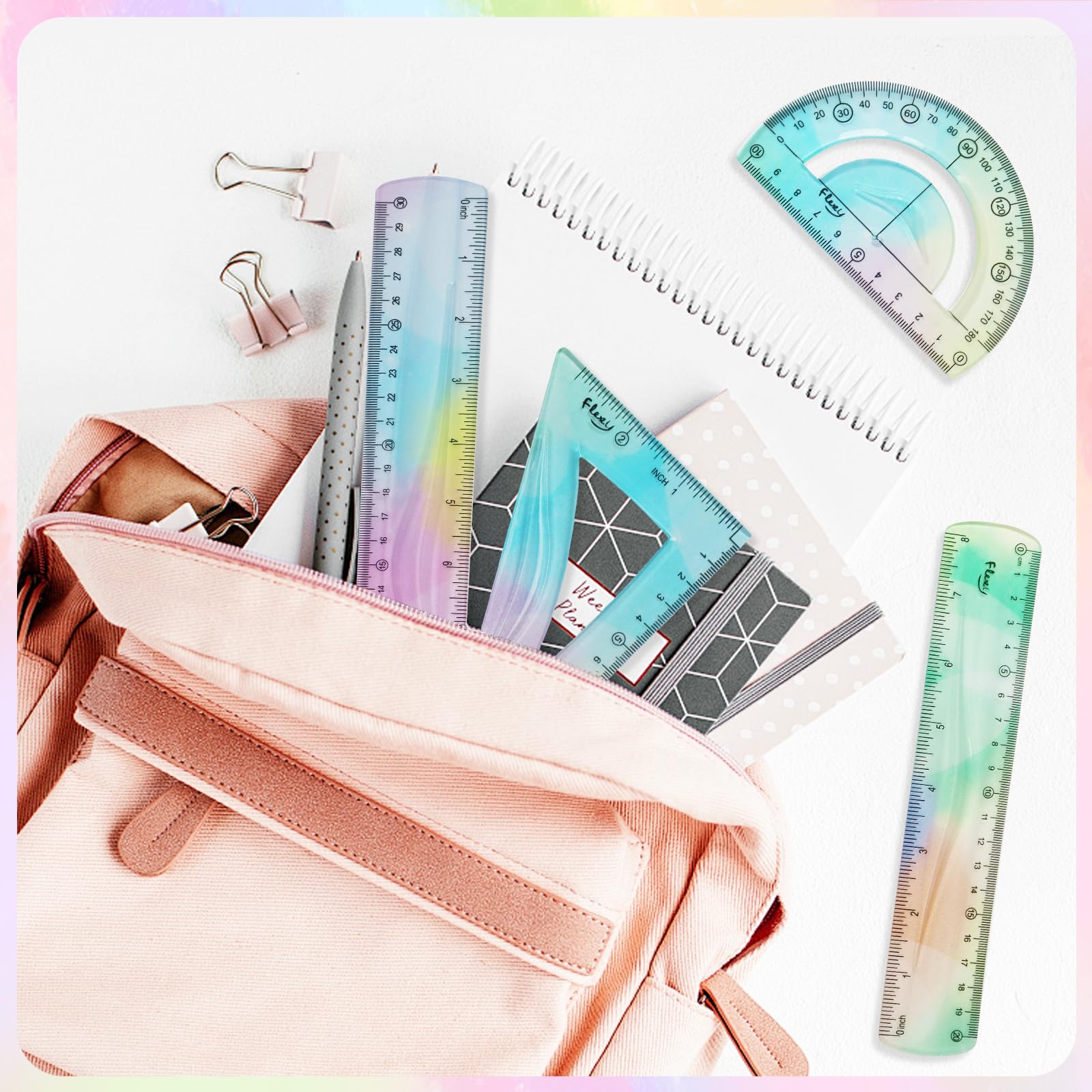 - Perfect Gift: This set includes geometric rulers and two additional straight rulers, making it an ideal gift for students and teachers. Designed with smooth, safe edges, these bendable plastic rulers are practical and thoughtful gifts for family, friends, or anyone in need of measuring tools