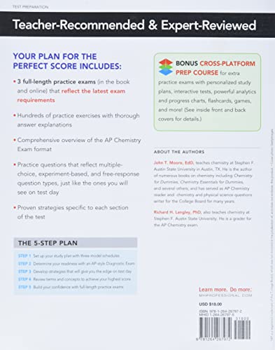 MATCHES THE LATEST EXAM! Let us supplement your AP classroom experience with this multi-platform study guide. The immensely popular 5 Steps to a 5: AP Chemistry guide has been updated for the 2021-22 school year and now contains: 3 full-length practice exams (available both in the book and online) that reflect the latest exam Access to a robust online platform Comprehensive overview of the AP Chemistry exam format Hundreds of practice exercises with thorough answer explanations Proven strategies specific to each section of the test A self-guided study plan including flashcards, games, and more online
