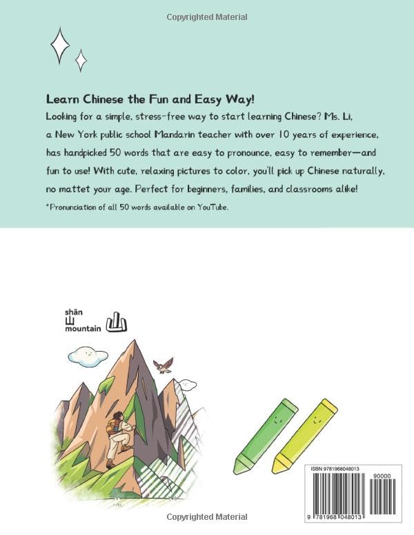 This coloring workbook introduces young children to basic Chinese vocabulary in an engaging and interactive way.