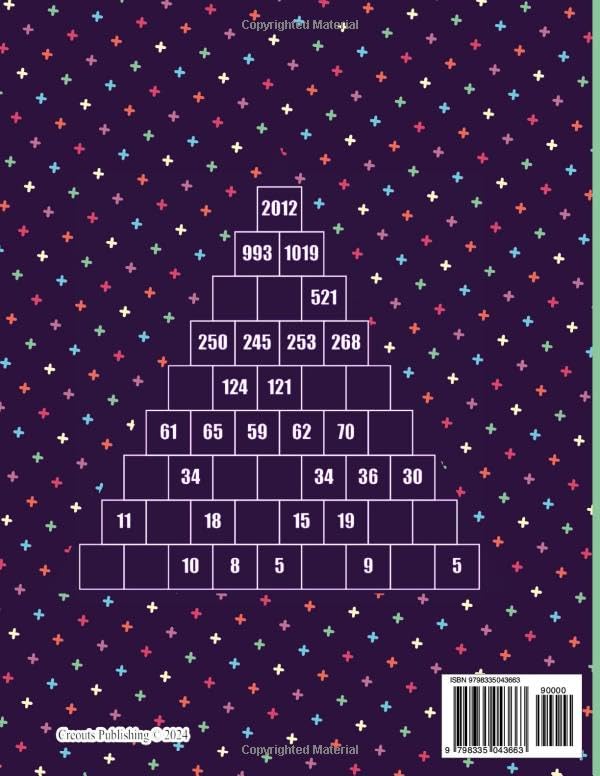 500+ Math Pyramid Puzzles Solve these triangular math puzzles game for fun or relaxation or daily routine mental exercise. Features: Difficulty level: Easy to hard Number of puzzles per page: 4. Comfortable spaces around puzzles. Number of puzzles: 504 puzzles Table of content and page numbers: Included Solutions: Followed after puzzles Instructions: Basic instructions how to play included at the end of the book Book size: 8.5″ x 11″. Extras (download for home printing): 88 very hard math pyramid puzzles book Optional larger solutions for 500+ math pyramid puzzles book Ideas Solving the puzzles leisurely While waiting or travelling Timing yourself or others as a fun challenge Daily arithmetic practice mental exercise As a gift for math lovers Possible benefits of puzzles Recognition or recognition memory Overall mental sharpness Patience Concentration Relaxation Mental reward or sense of achievement Have fun!