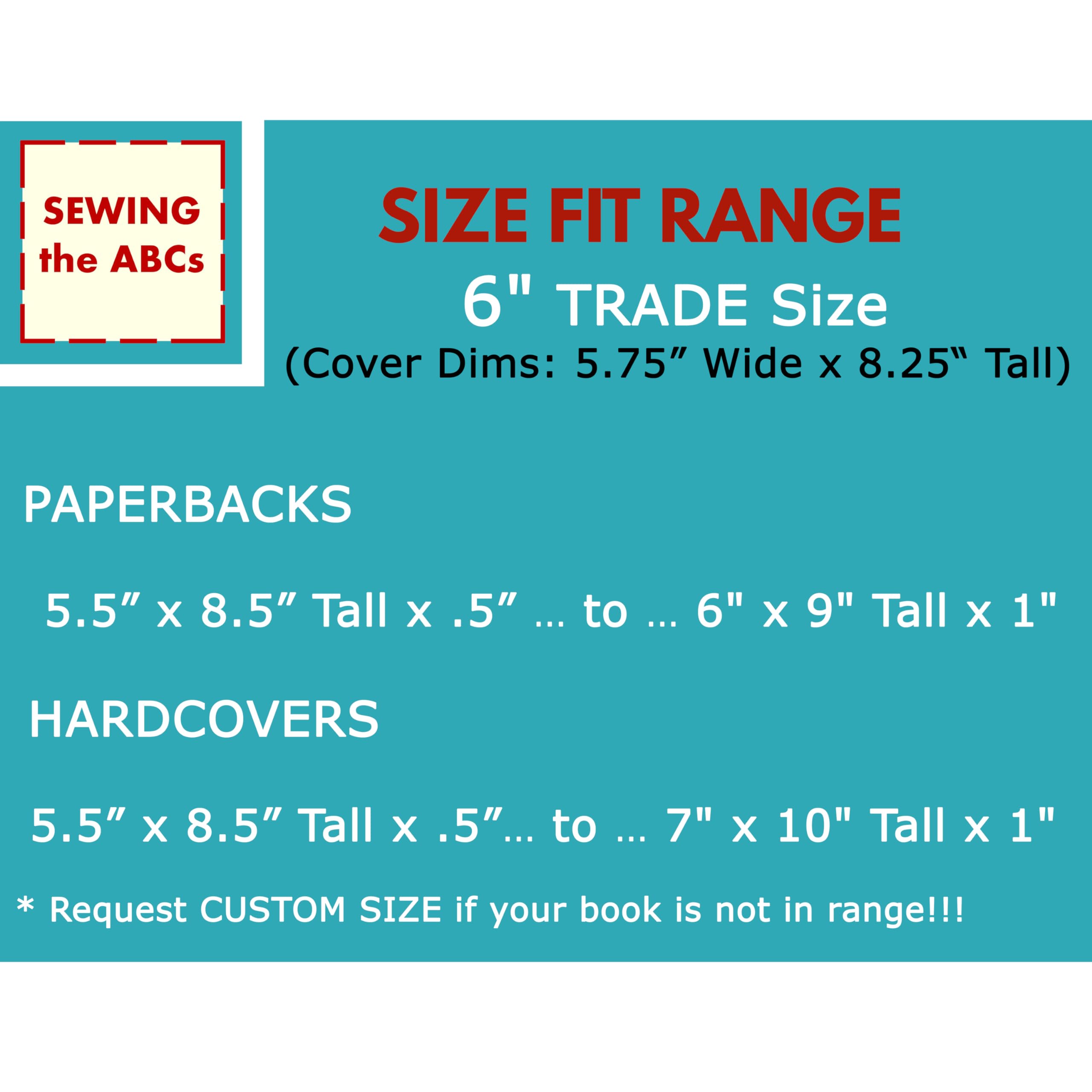 PAPERBACK Fit Range: … 5.5″ x 8.5″ Tall x .5″ … to … 6″ x 9″ Tall x 1″