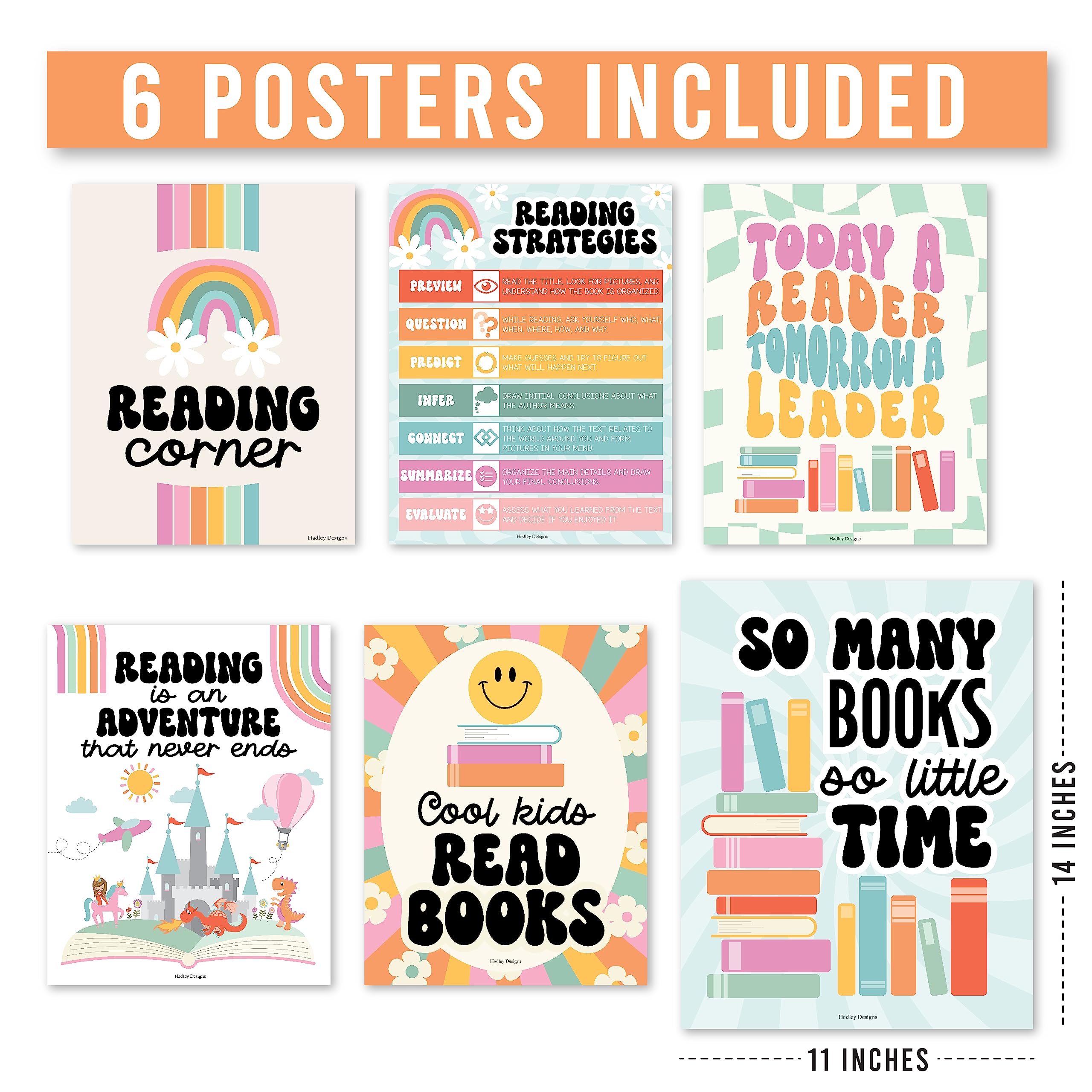 - Develop A Daily Reading Habit That Sticks; You’ll receive 6 different 11×14″ classroom/library posters, so you can finally get kids excited about reading; Use these reading posters for library classroom decorations to get kids off screens and into books