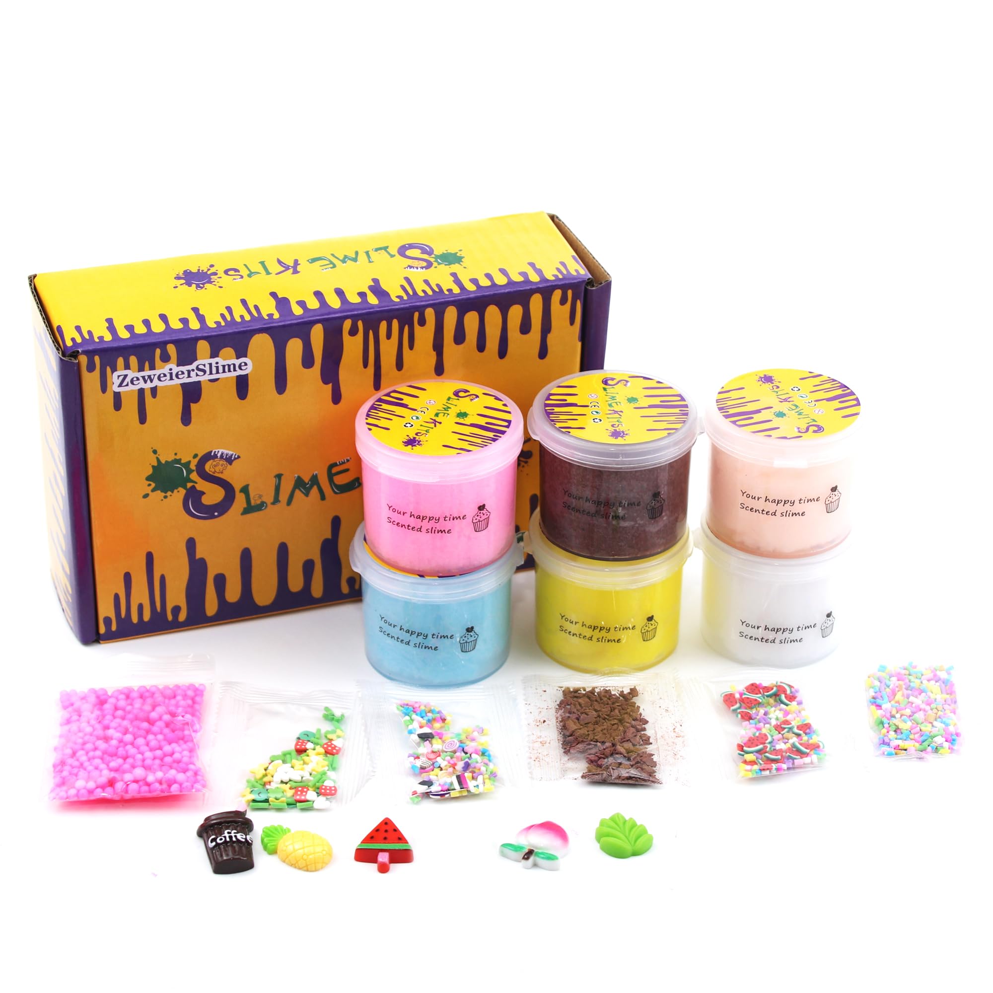 • 6 Pack Cloud Slime Kit party favors with slime charms and slime add ins(5*60ML).