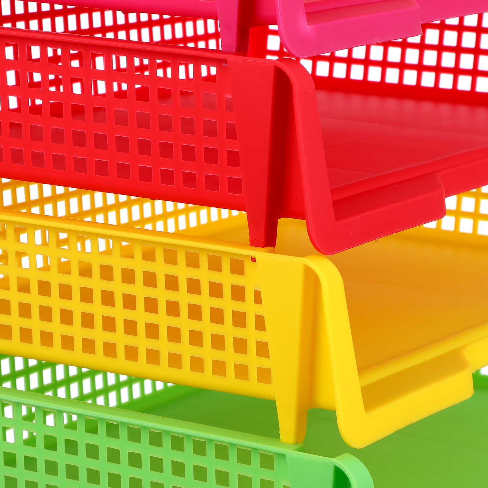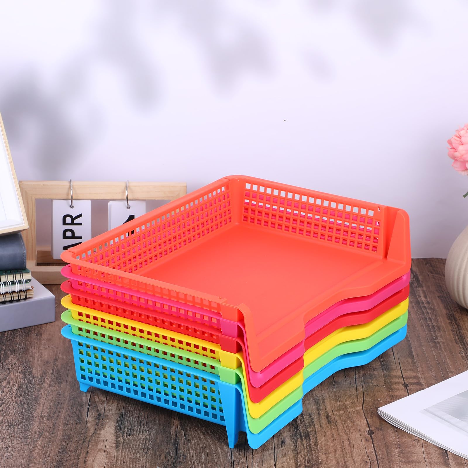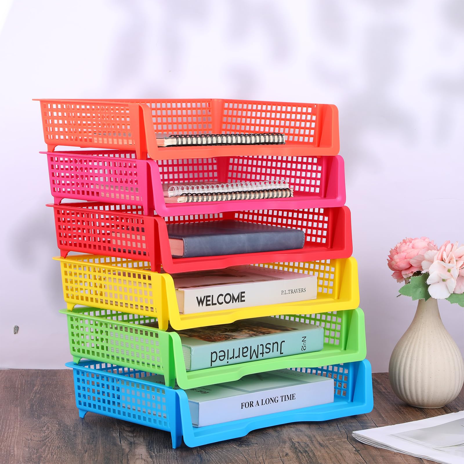 6 Pack in Trays for Teachers, Plastic Classroom Paper Organizers, Colorful Storage Baskets for Office, Stackable Office Desktop Document Paper Storage(13.4 * 9.5 * 2.7in)